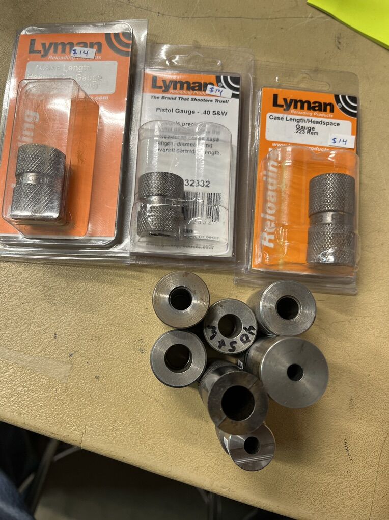 Dillon stainless, Wilson, Hornady, Lyman, Midway, EGWguns, Shockbottle and custom. 223 to 30-06 and 9mm to 45acp. All marked prices then minus 10%. Dillon stainless steel 223 is $30. New $50+. Wilson are $30 new, now $20-10%=$18.00. 30-06, 300 aac, 7mm-08, 25-06, 6mm rem, 223, 45acp, 9mm. Hornady are $25 new, now $16-10%=$14.40. 300 win mag, 6.5 Creedmoor, 223. Lyman are $14-10%=13. 300 aac, 223, 40sw. Midway are $11-$15. 45acp, 40 sw, 357 mag. Custom 30-06, $10. 243 for $20. EGWguns.com 7 hole 45acp and 38 super for $20 ea. Shockbottle 100 round 9mm. New is $120, now $70-10%=$63.00. I will ship for postage costs. Please see my other ads. Thanks, Joe.