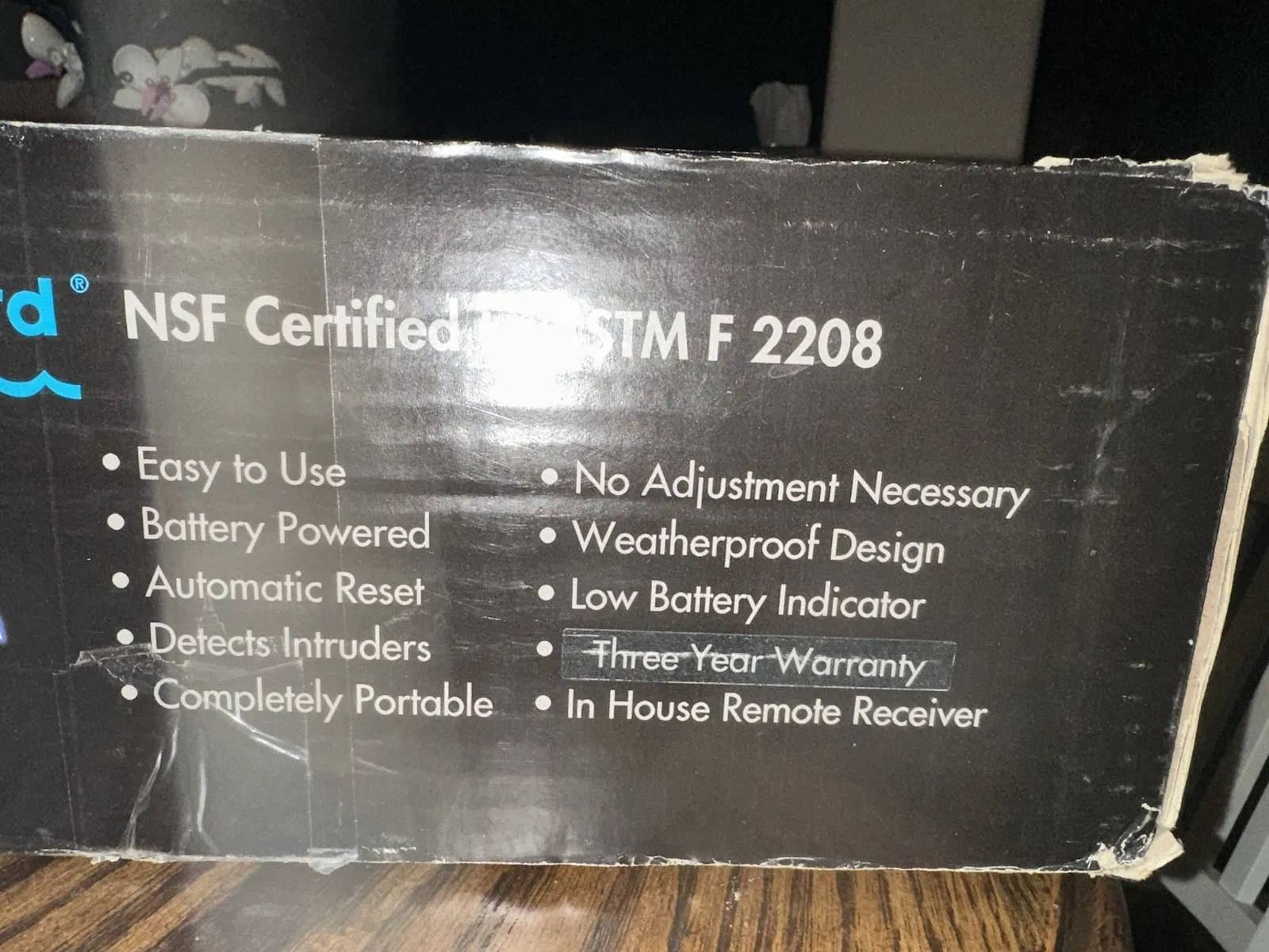 The alarm is new and was set up one time and put in our pool to make sure that it worked. When I was boxing it back up I noticed a little crack on the side on the top corner (see photos). It does not affect the use of the alarm and the unit is still solid.