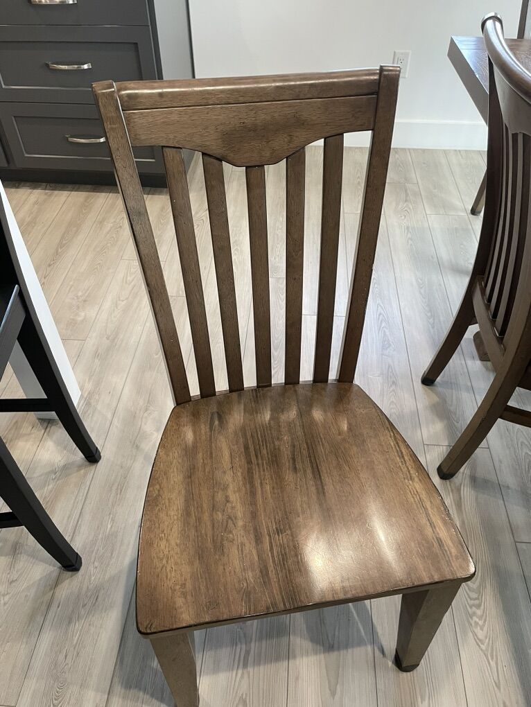 VenmoLarge dining room table with 6 solid constructed chairs. Chairs are in excellent condition. The table does have some water marks. Measurements with the table leaf in place is 96” x 41 3/4”. Without the table leaf is 76” x 41 3/4”. Asking $350 obo. Text or KSL messages preferred.