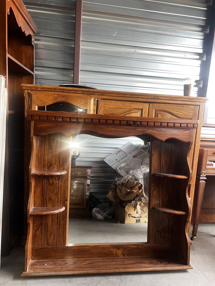 Venmo1970s dresser and hutch with mirror. Overall great condition apart from a few minor nicks on the hutch and a small section bubbling under the top surface of the dresser. All imperfections are shown in photos. The hutch is made to go on top of the dresser which is why they are being sold as a set.