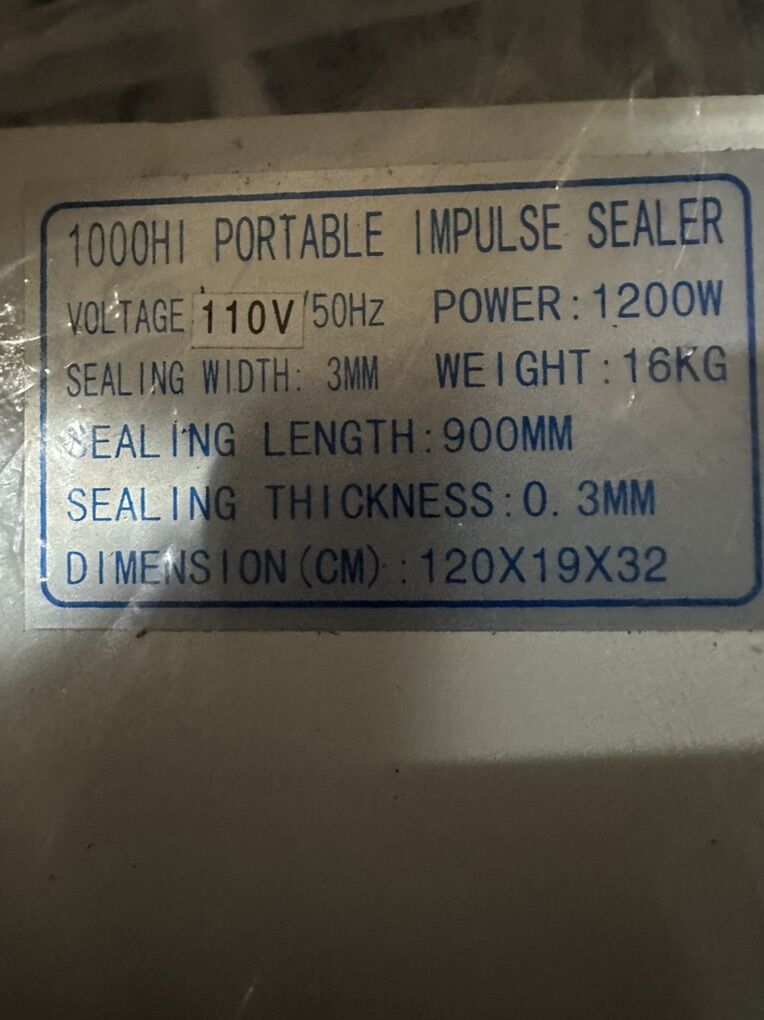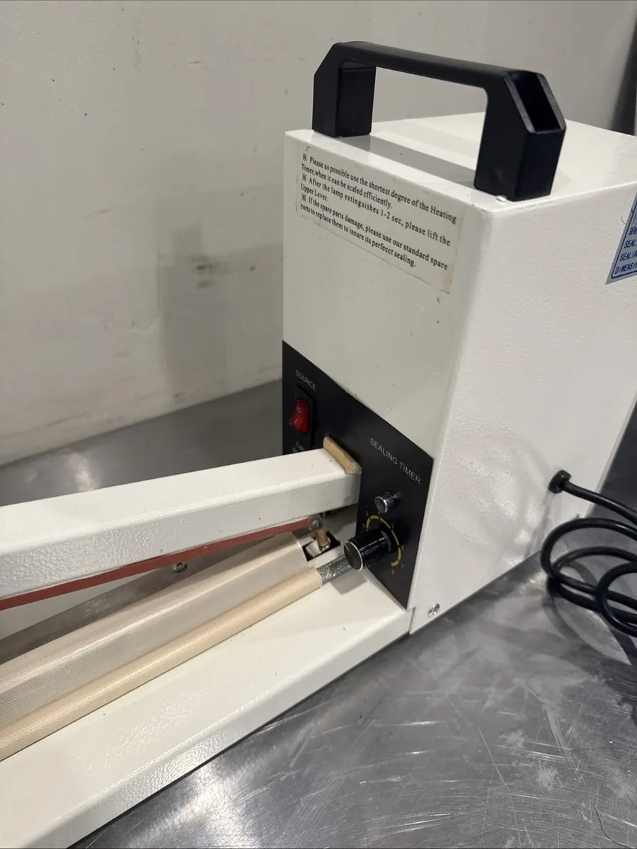 The HI-1000 Impulse Heat Sealer is a versatile sealing machine designed for various applications in the packaging and shipping industry. With its poly element plastic sealing capabilities, this machine provides efficient and reliable sealing for a wide range of materials. The Impulse brand ensures quality and durability, making it a valuable asset for businesses looking to streamline their packaging processes. The HI-1000 is a dependable option for those in need of a high-quality impulse heat sealer for their packaging needs. 0.11 (2.7mm) seal width ensures heat sealer can seal up to 8 mil plastic bag with 1400W heating element Steel construction build tough for sealing long and wide plastic bag with effective seal length of 39.75 To seal bag, set the timer and insert the bag between sealing bar and platform, press down and release Equipped with an easy-to-use electric timer to better control the sealing time