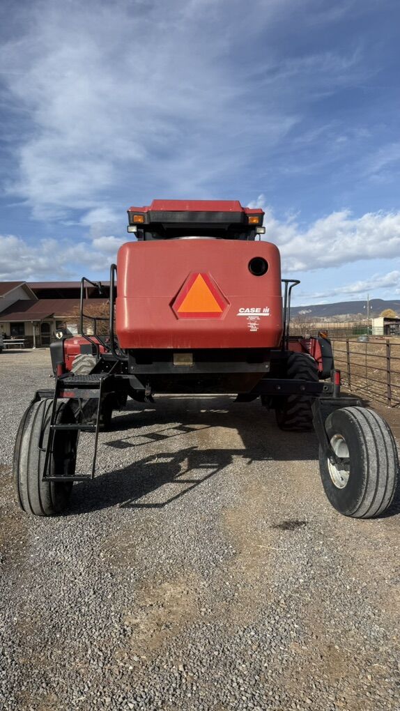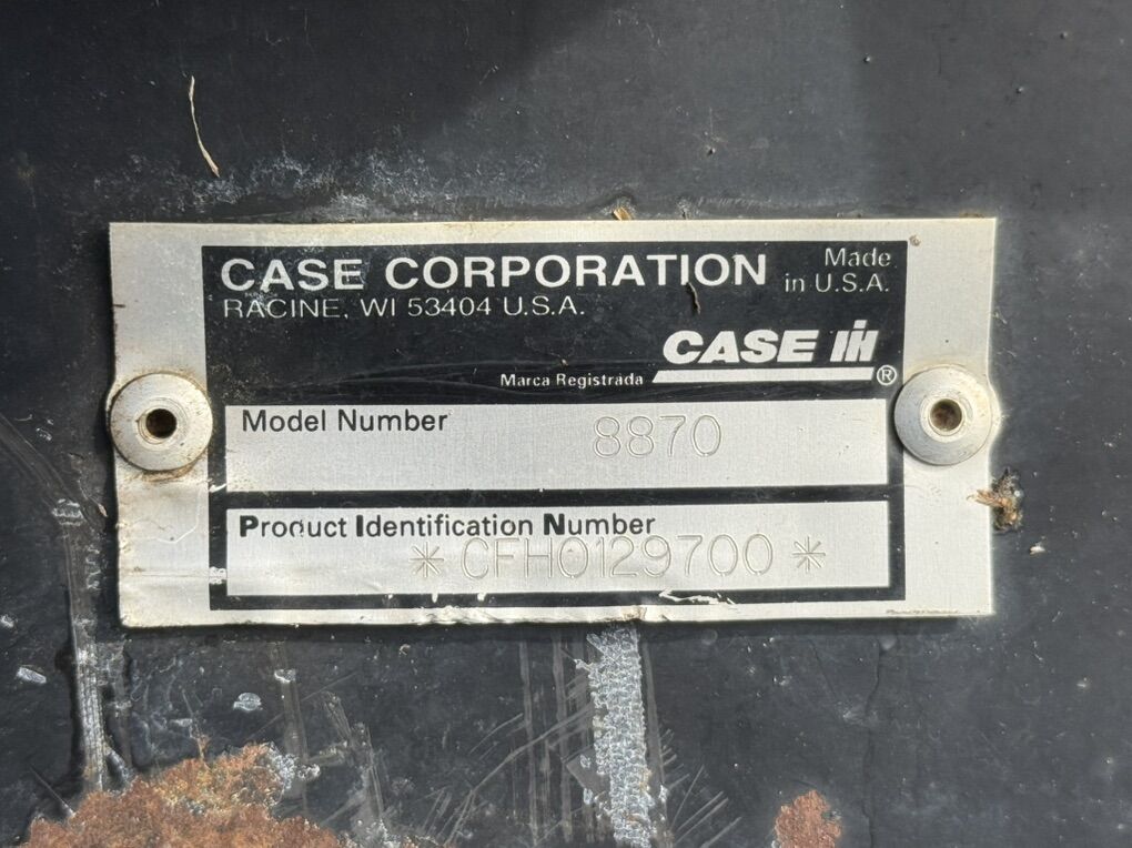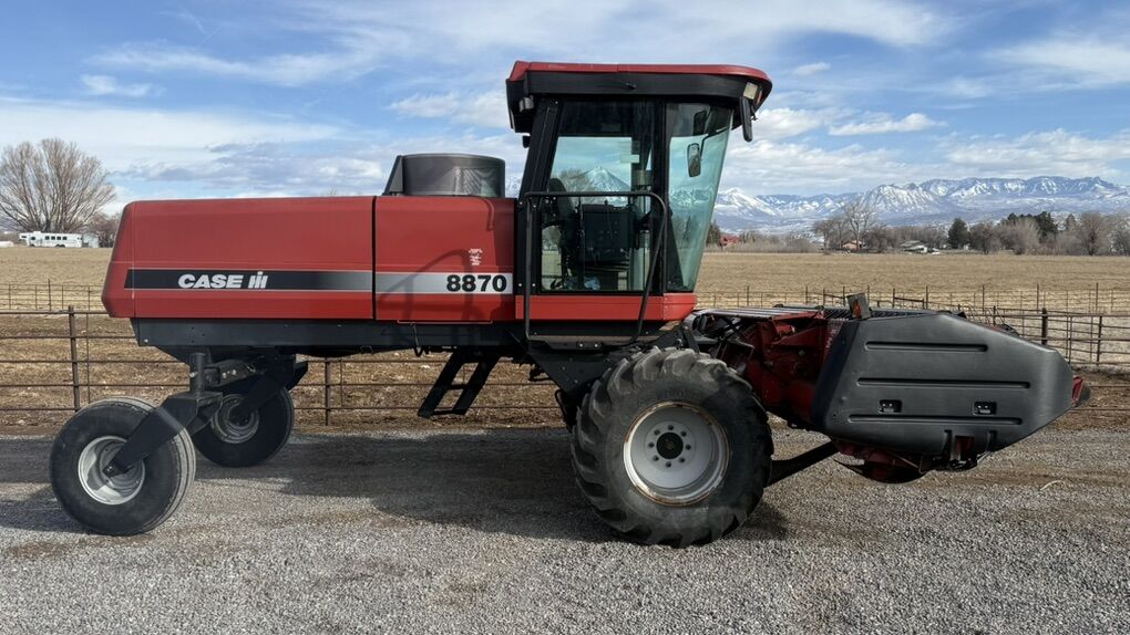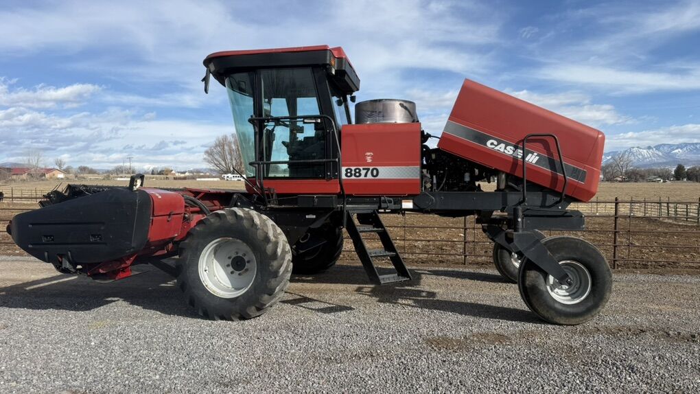 1999 Case 8870 Swather. 14 ft. twin sickle bar header. 4 cly. Cummins diesel 2665 hours, air ride seat, AC works, no leaks, tires good, buddy seat. Rubber over steel conditioner in good shape. Comes with extra guards, sections and bolts for each. Stored inside most of its life when not being used. Clean tight machine that is field ready. Moving out of state no longer need it. $31,000