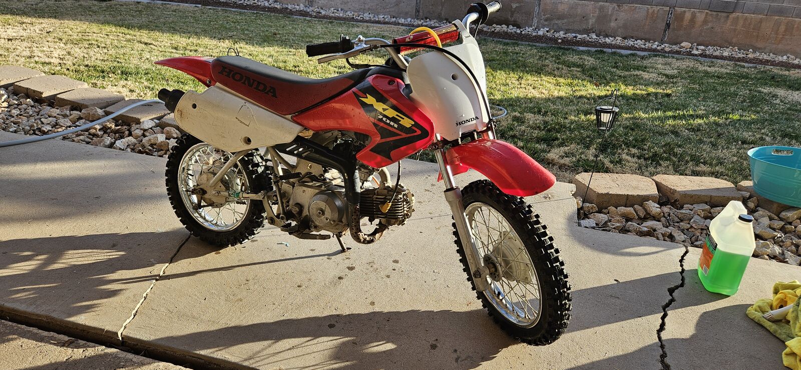 Great bike I bought for my son. I had most of the bike overhauled then he tipped it over once and it has sat for over a year since. The bike fires up on the first kick. The front suspension has been redone with new seals and oil. New OEM Honda carbonator. Just changed the oil and installed a new spark plug. Tires are new front and rear. I also have a new chain for it I have not installed.