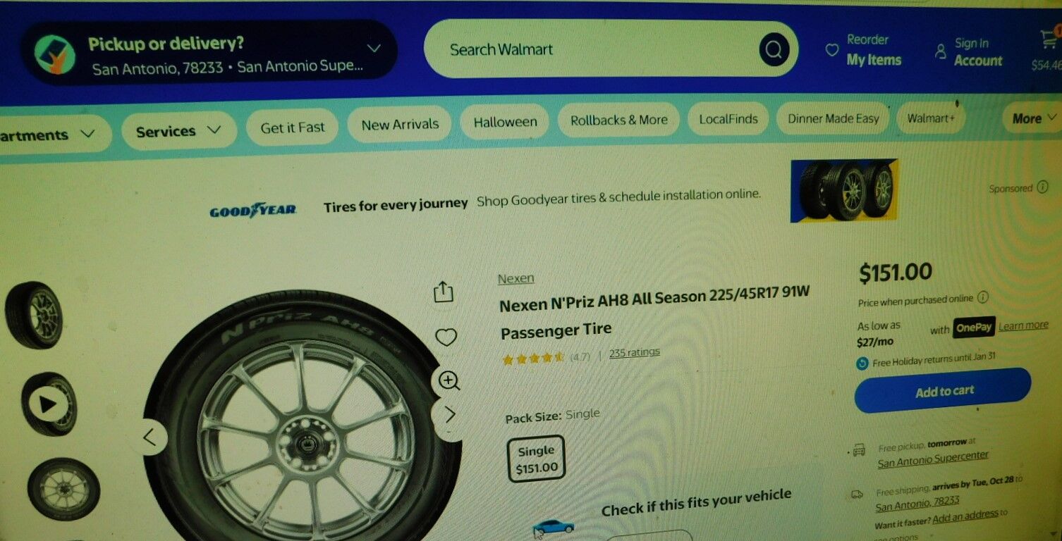 Set of 4 225 45R 17 Nexen N Priz AH8 A/S M/S 91W all season like new $180 $45 per tire Walmart $151 per tire must see