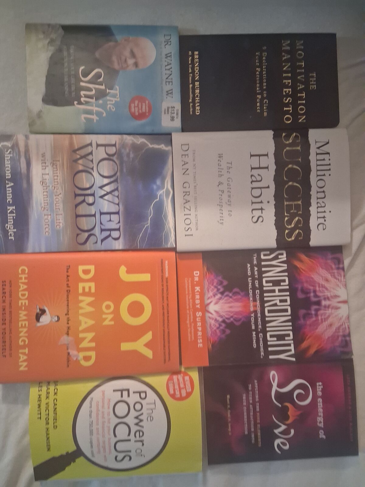 VenmoI HAVE A LARGE SELECTION OF SELF HELP, MOTIVATIONAL, SPIRITUAL BOOKS. MOST HAVEN'T BEEN READ, AND BRAND NEW. ALL IN GREAT SHAPE! CASH, VENMO ONLY. TEXT OR EMAIL IM SELLING THEM ALL FOR 50% OFF!