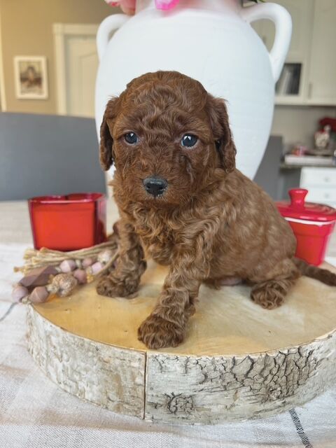 We are excited to offer our beautiful micro F1bb Goldendoodle puppies, lovingly raised in our home with constant affection, hands-on care, and daily interaction. These pups have been around younger children, helping them grow into confident, well-socialized companions.