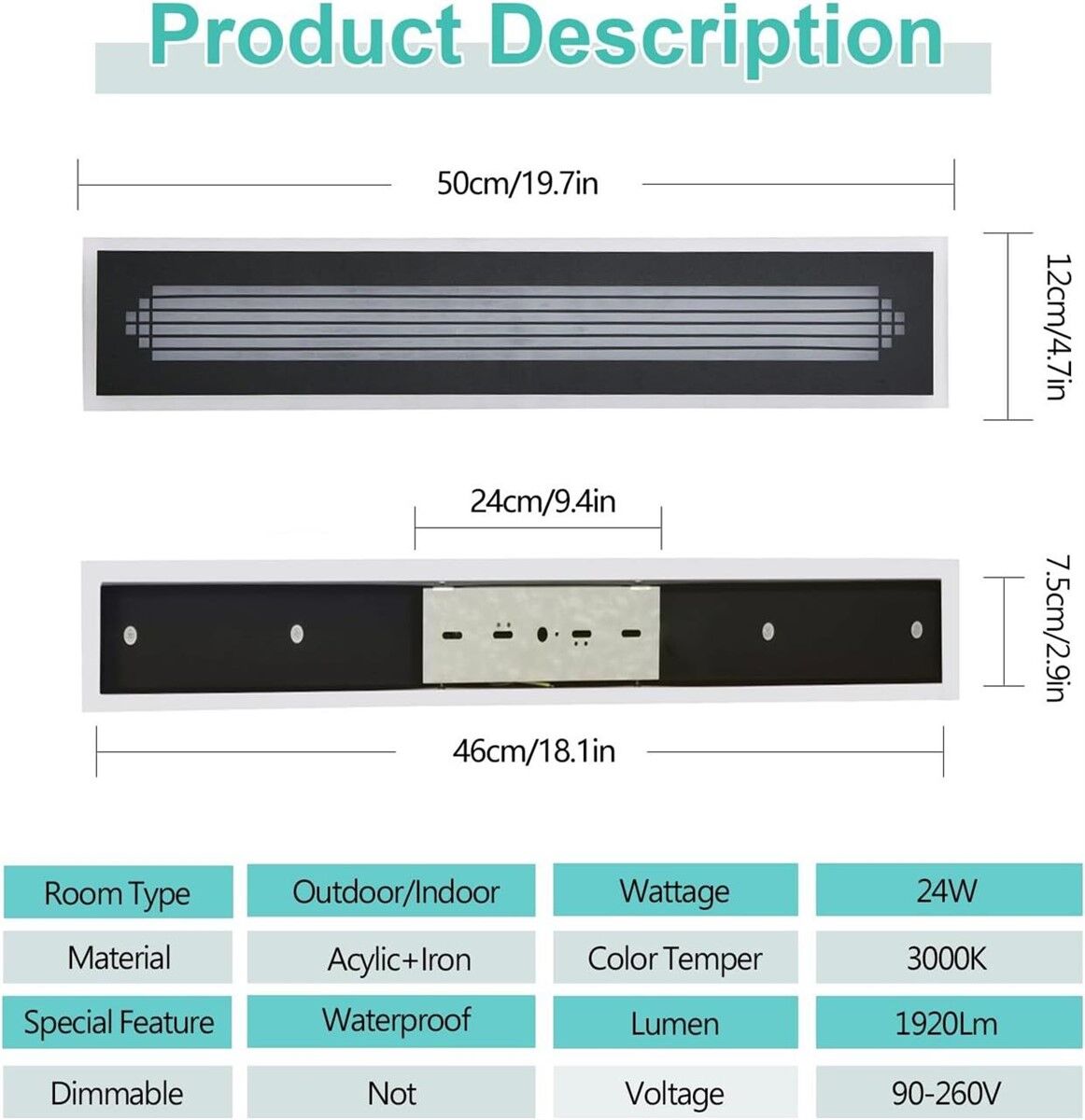 ApplePay3 Pack - Black LED Outdoor Wall Sconce 24W LED IP65 Light Fixture - 19.5" x 5"
