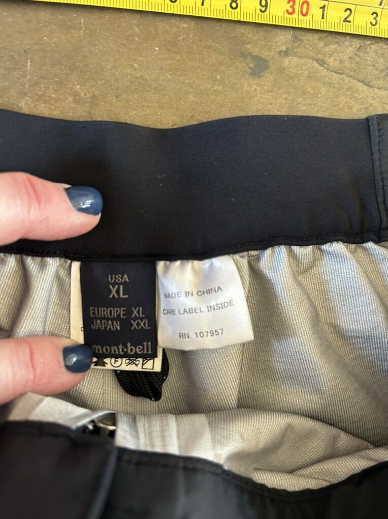 VenmoLike new mens size extra large black Montbell full-zip rain hardshell full-zip rain pants. Clean smoke free. Cash or Venmo. Located in and picked up from Alpine.