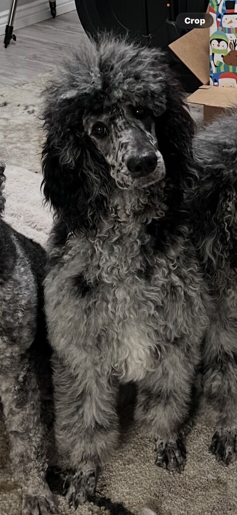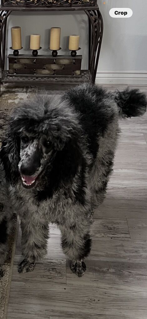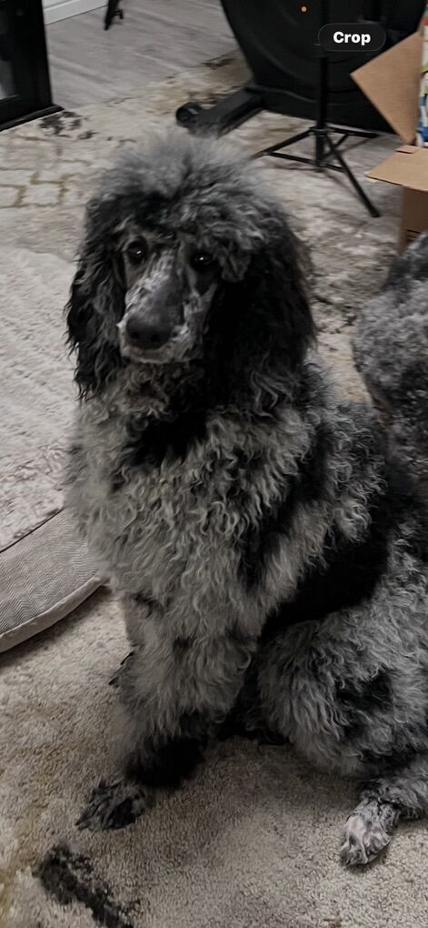 VenmoRare blue merle, standard poodle female, 10 months old. Very smart obedient she has a house dog I kennel her at night. I am offering her to a pet home for 1800 or 2500 with breeding rights. I am also placing her mother. She is a spayed four-year-old female and her price is 500 and does not require kenneling at all. She is well behaved and doesn’t get into anything and is 110% house trained. she is also a blue Merle serious inquiries only please both have embark test and cleared of all congenital defects.