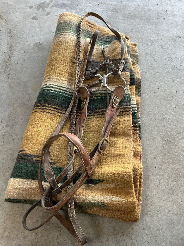 One stop shopping, with high end quality items that have already been setup for use; no need to shop around for cheaper quality- includes a headset, bridal, reigns, Snafflebit, quality thick wood pad with leather trim, and high-end blanket and a second Cooldback pad. And also comes with some extras like a saddle rack, Leatherman (and in a holder), and handmade hobbles (that are effective and safe), small leather crop, long training whip, hat bands, etc.