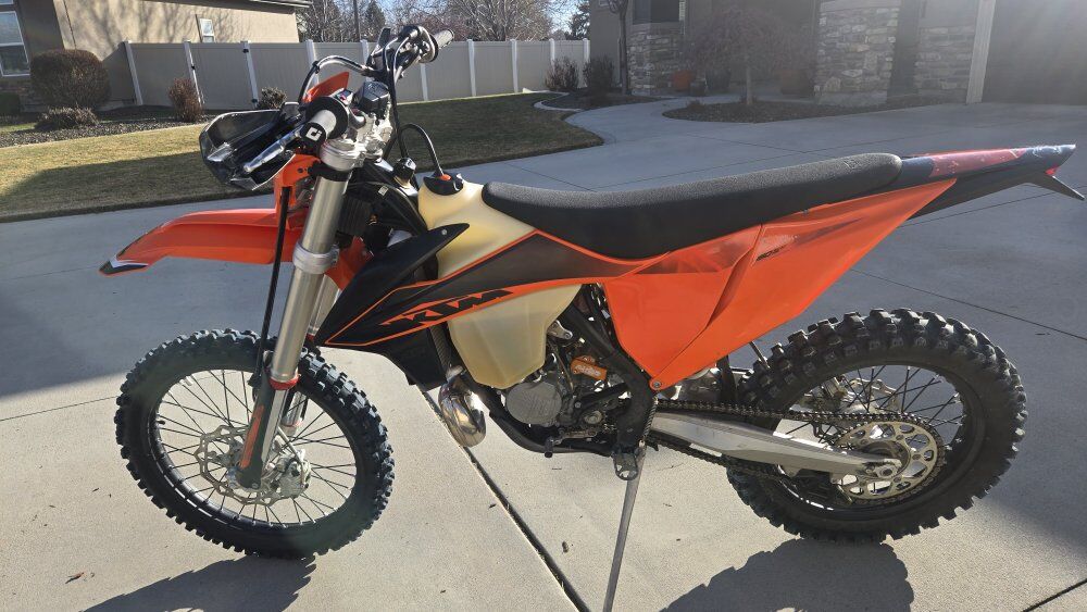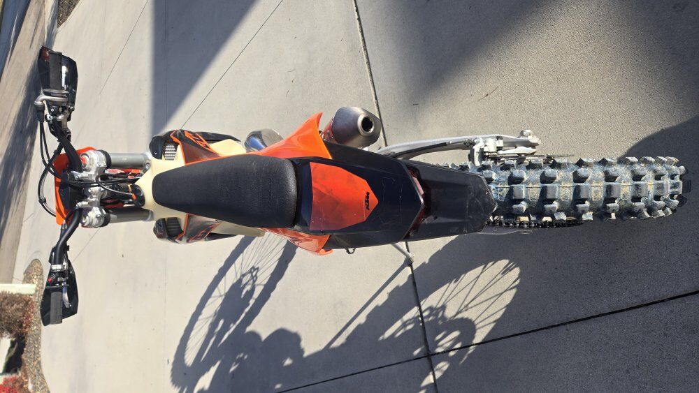 This was my adult daughter’s bike and she has upgraded. Trail ridden in the desert only. Still has original tires so you can evaluate the ease of riding it’s had at 42.8 hours, or 780 miles. Upgrades include: TSP medium head and ECU reflash, OEM map switch added, and aluminum throttle body cover. Includes an FMF Turbine Core spark arrestor, and an KTM low seat. Transmission oil changed and air filter cleaned regularly. It was purchased new in 2021 and we are the only owners of the bike. The bike is in amazing condition and is fun to ride. Great bike for anyone.