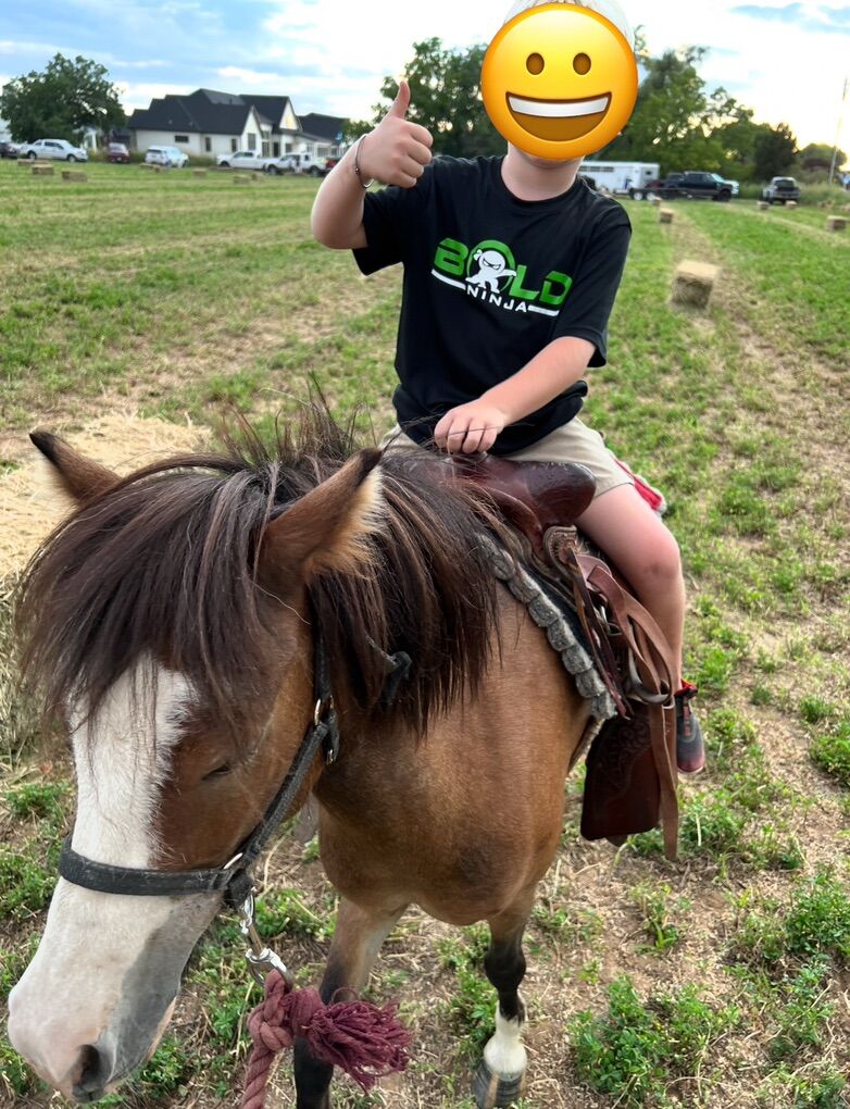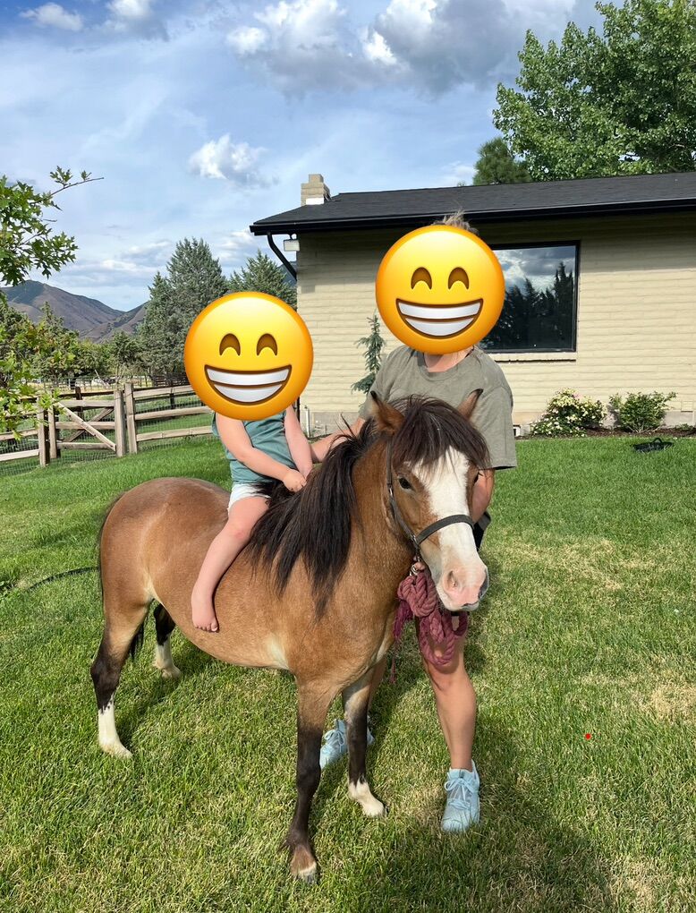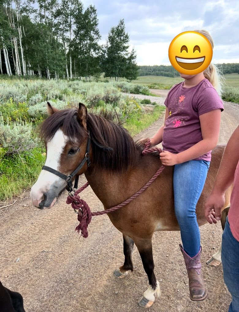 Mini is a beautiful bay miniature pony. She’s broke to give kids rides but we’ve never had kids ride her without being led. She’s a good temperament and easy on the eyes. Our kids are on to older horses so she’s just been a pasture ornament and needs a good home.