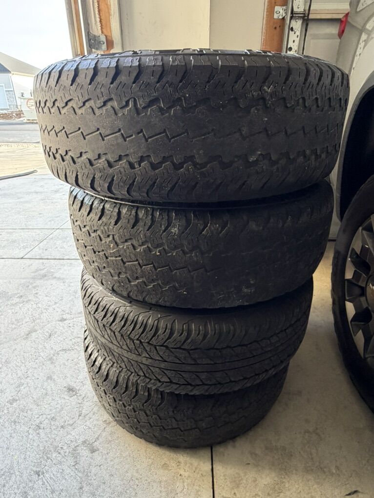 CashAppSelling Set of 4 Factory OEM 17 x 7.5 fits 4Runners/Tacoma. These came off a 2004 Toyota 4Runner. Tires will need replacing Center Bore / Hub Bore: 106.1 mm Bolt Pattern (PCD): 6x139.7 (6x5.5)