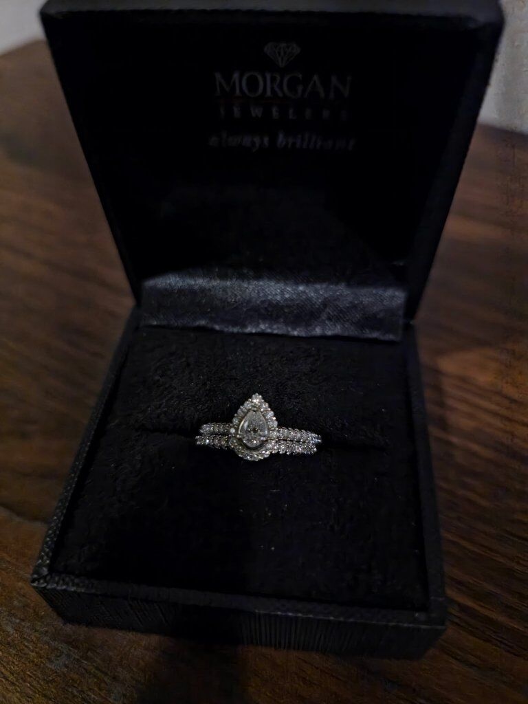 VenmoEngagement ring is 1/2 ct, Band is 1/8 ct Bought from Morgan jewelers Size 5, it can be resized at Morgan jewelers if you purchase there piece of mind warranty, the diamonds come with warranty through Morgan jewelers, the ring was barely worn, and the band has never been worn except for trying on. Message me if you have anymore questions!