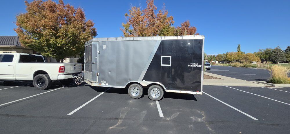 VenmoHolds 3 sleds easily and 4 if you're strategic. Has been a good trailer, but I needed a bigger one, do I bought another trailer. has a diesel heater, ski runners, and a stereo. Branded title from prior owner. It tows perfectly and is in decent shape for year. priced to sell quick, as I have too many trailers at my place.