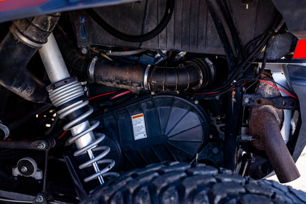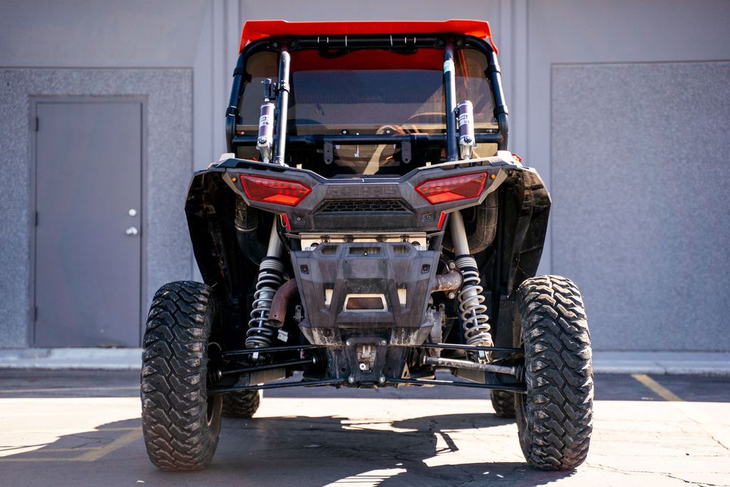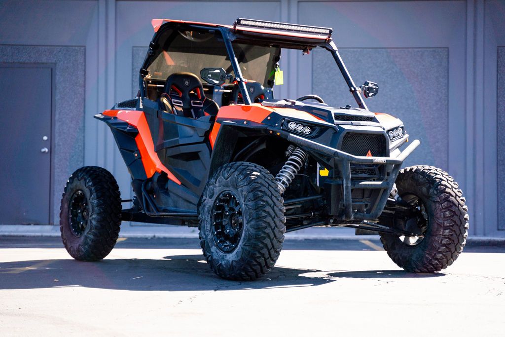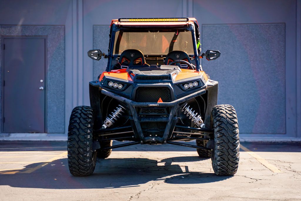 2015 Polaris® RZR® XP 1000 EPS Orange Madness Features May Include: 999CC ProStar® EFI ENGINE Designed specifically for extreme performance, the Polaris ProStar® 1000 engine features 999ccs of big bore twin displacement and all of the hallmark ProStar® features. This includes dual overhead cams, electronic fuel injection, and 4 valves per cylinder. It also features 48MM throttle bodies and long-tip fuel injectors giving the 2015 RZR XP 1000 Desert Edition instant throttle response, quick to rev characteristics, and the highest horsepower in the sport SxS market. 110 HP ProStar® 1000 H.O. For 2015 we wanted even more power and torque! So we tweaked the cams, installed bigger valve springs and optimized the fuel map to give you 110 horses of High Output power. Dual overhead cams (DOHC) actuate four-oversized valves per cylinder, slamming a huge fuel charge into the combustion chambers of the engine for maximum performance. HIGH-FLOW CLUTCH INTAKE SYSTEM We've completely re-designed the clutch cover, secondary helix and ducting system to offer the most durable clutch system ever on the RZR XP 1000. New ducting provides twice as much airflow and decreasing belt temperature by over 50 degrees. Suspension Features NEAR BOTTOMLESS FEEL WITH EXCLUSIVE WALKER EVANS SHOCKS Industry-exclusive Walker Evans needle shocks deliver next level performance and tuning capabilities. Aside from the ingenious anti-bottom needle technology, the 2.5-inch diameter rear shocks feature tool-less 16-position compression dampening control, allowing you to tune for the perfect ride for any condition. THE MOST ADVANCED SUSPENSION FOR MOST CONTROL AND SMOOTHEST RIDE The new race-inspired 3-link trailing arm rear suspension serves up an incredible 18-inches of rear wheel travel. Matched to an astounding 16-inches of front suspension travel and 13-inches of ground clearance, the king of the RZR family conquers the worst terrain Mother Nature has to offer. HIGH CLEARANCE LOWER A-ARMS AND RADIUS RODS High Clearance Lower A-Arms and Rear Radius Rods are stock giving you a full 13" of ground clearance to keep you riding high above the rough stuff Agility Features INDUSTRY LEADING GROUND CLEARANCE AND LONG WHEELBASE The RZR XP 1000 Desert Edition is built upon a 90-inch wheelbase and 13-inches of ground clearance. The chassis and suspension combo smoothes the harshest terrain without unwanted chassis pitch; and delivers unmatched control and comfort without sacrificing agility. Giving you our legendary razor sharp handling even in the most challenging terrain. High Performance True On Demand All-Wheel Drive System The High Performance True On-Demand True All-Wheel Drive System is revamped with an 80 percent improvement in strength over the standard system. The result is the most durable front drive system ever found on a RZR. The system features close ratio final drive to keep the front wheels pulling stronger and longer maximizing power delivery to the ground on even the loosest terrain. The reduction provides increased traction without sacrificing steering effort to provide unmatched point-and-shoot handling. PERFORMANCE OPTIMIZED SUSPENSION GEOMETRY A race-inspired 3-link rear suspension maximizes acceleration, sharpens control, and improves straight-line tracking by keeping the tires in contact with the ground more often. Polaris redesigned the already best-in-class 3-link suspension introduced in 2011 with revised geometry to offer 25% more ground clearance from leading edge of tire in regards to the trailering arm; optimized camber gain for improved traction; and a longer trailing arm for added strength.