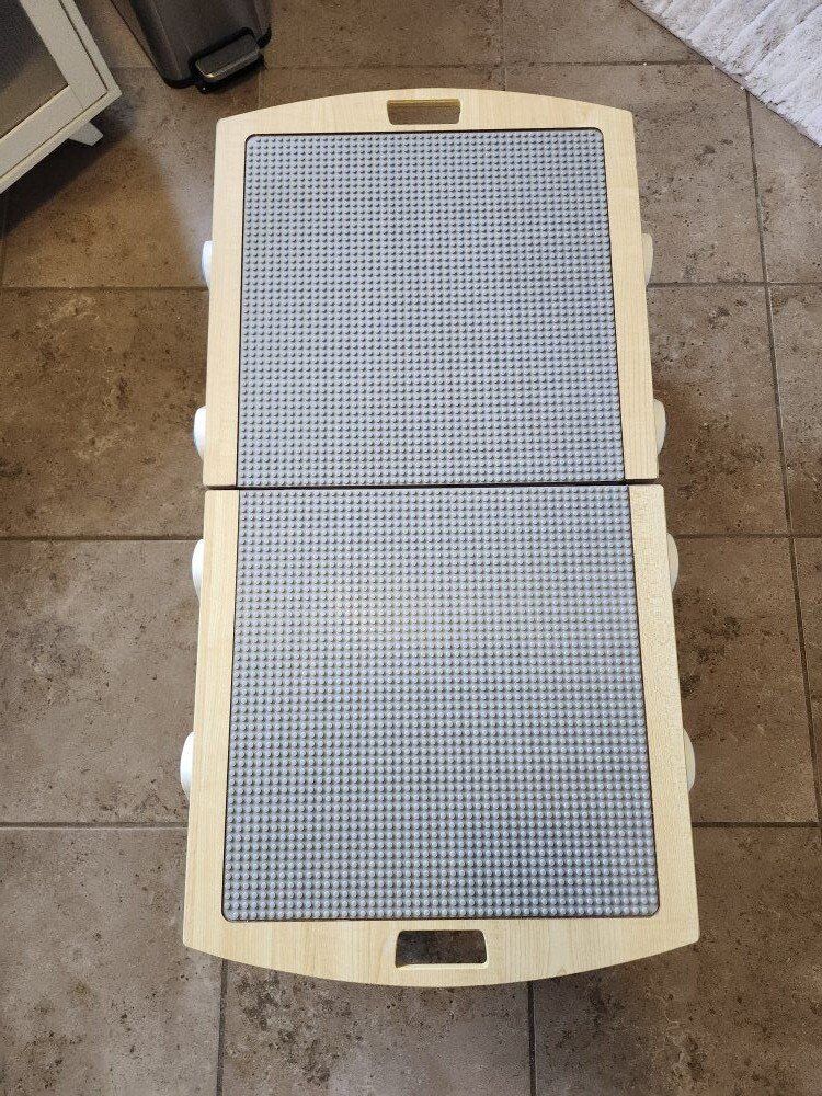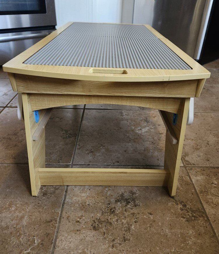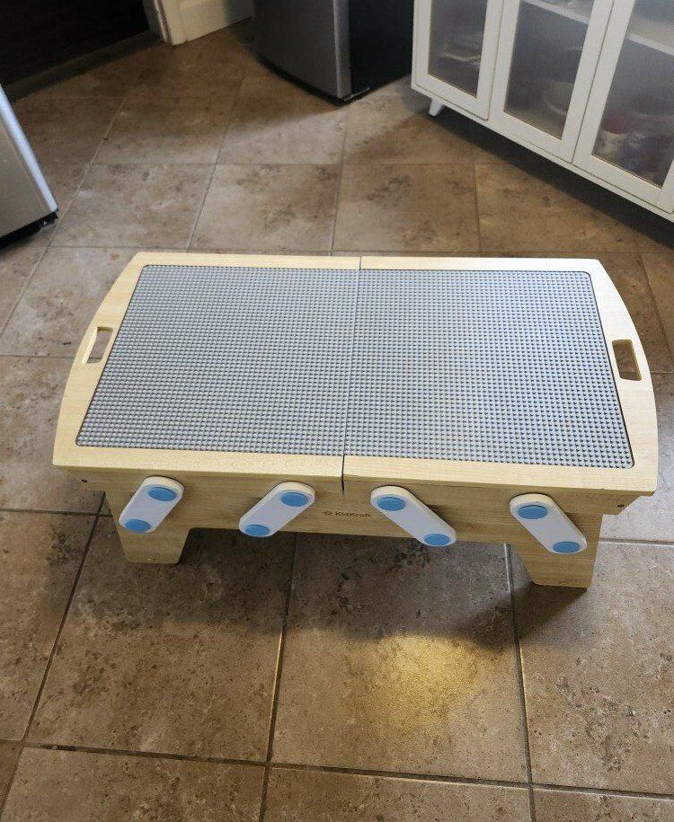 VenmoReally nice KidKraft LEGO-compatible wooden play table in great condition. The top slides open smoothly on both sides, giving kids a much bigger building surface and easy access to the storage space in the center. It’s great for keeping LEGO projects and pieces contained during play instead of all over the floor. Solid wood construction (not flimsy) and I’ve tightened all the screws, so it’s sturdy and ready to use. The sliding pieces work well and line up nicely when closed. Works great for LEGO, blocks, cars, crafts, puzzles or sensory play. A really practical size for a bedroom, playroom, or classroom. Size (closed): • About 3 ft wide • 18 in deep • 16 in tall When opened: • Expands to almost 4 ft wide (about 3 ft 11 in) Included: • Clear Sterilite storage bin shown in photos (removable and optional for use during play). The bin fits perfectly in the center when the table is open allowing for the toys and pieces are close and accessible. Clean, well cared for and a really practical piece that helps keep play somewhat organized.