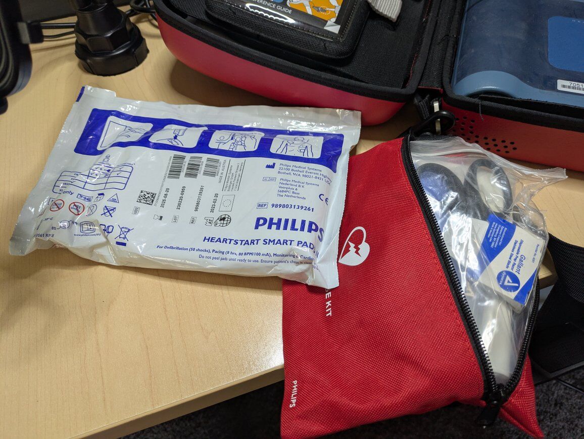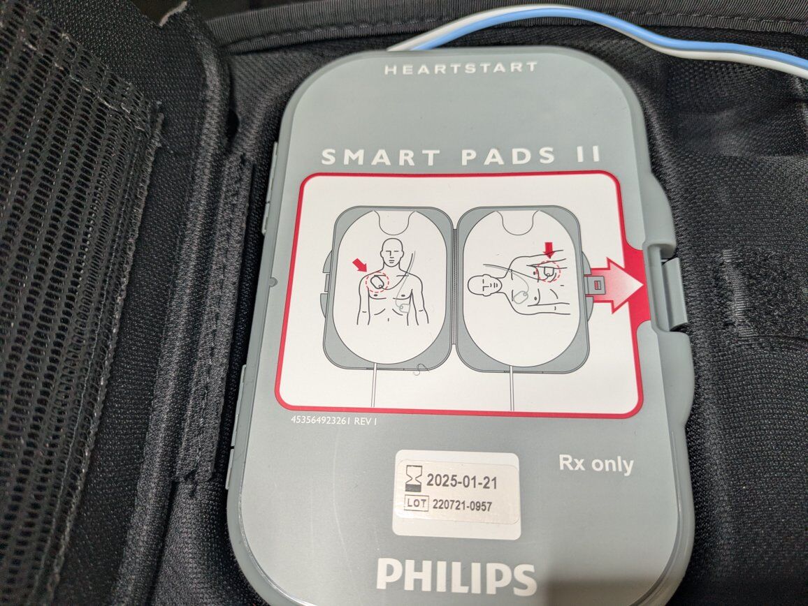 CashAppComprehensive Philips HeartStart FRx AED kit. Has the defibrillator unit, carrying case, and two sets of pads. Adult Smart Pads. Infant/Child Smart Pads cartridge (M5072A) for 0-8 years / under 55 lbs. Also includes a small accessory kit with scissors and a razor. Battery (M5070A)