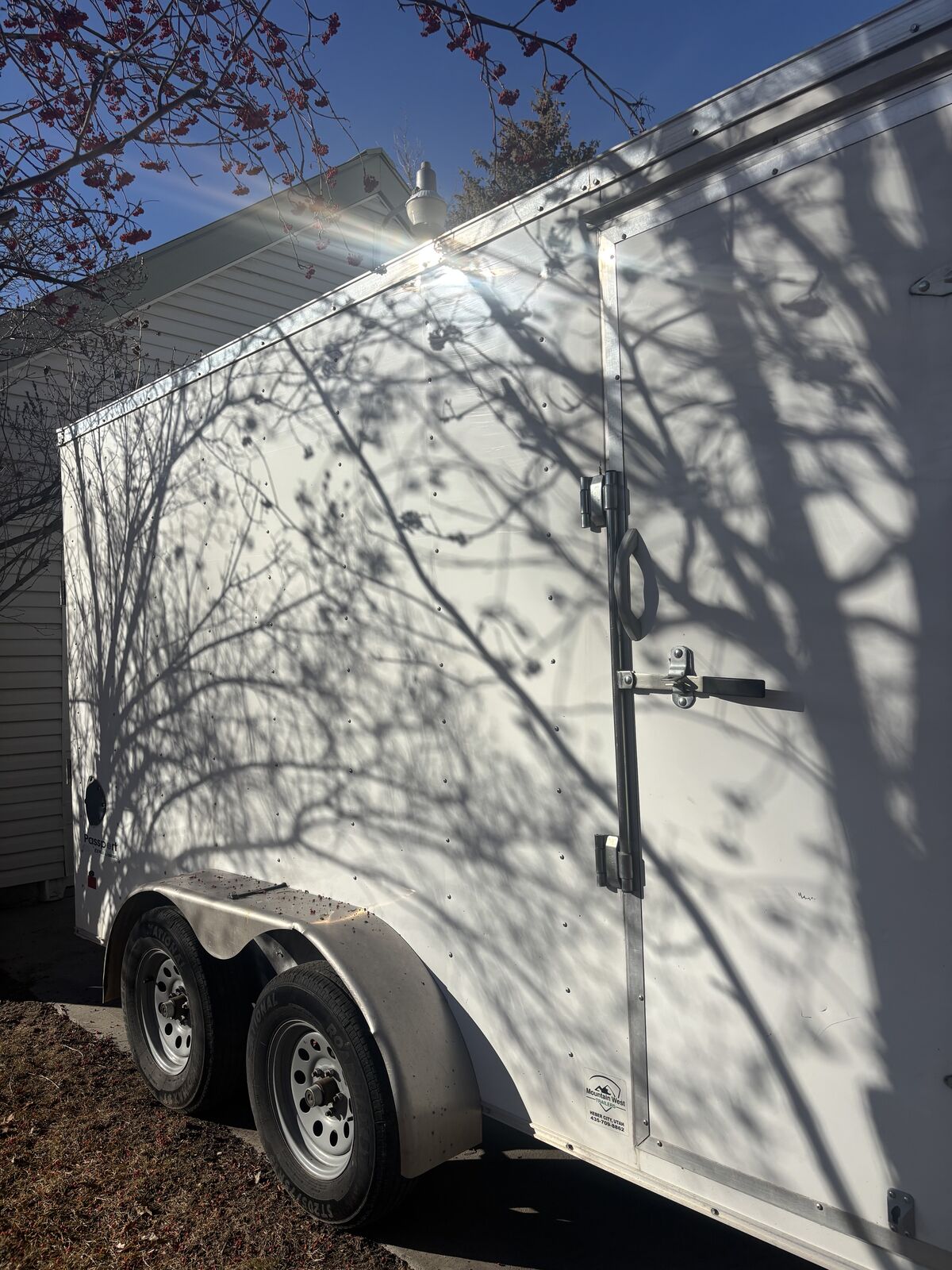 Venmo2021 haulmark 14 foot trailer. Dual axle. Well taken care of. Height 8 FT Width 8 Ft 6 Inches.