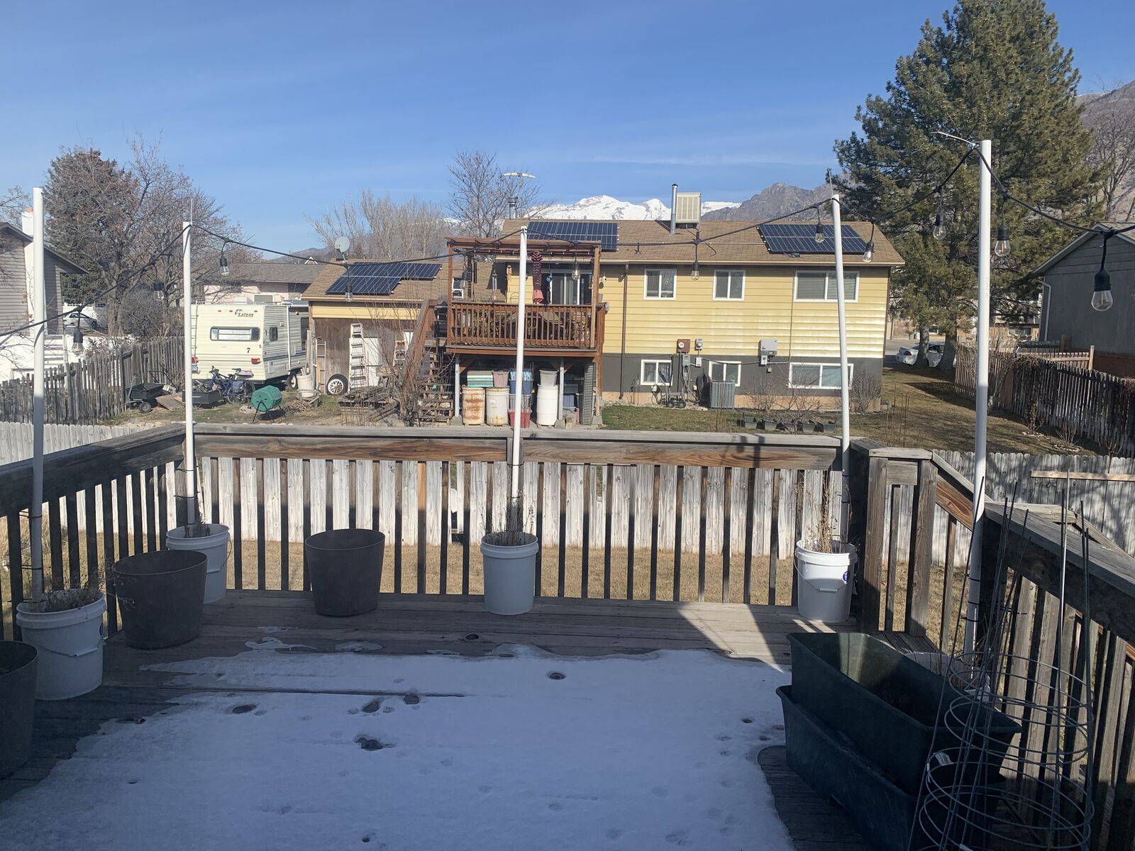 It has a cute deck and large backyard with gardening potential.