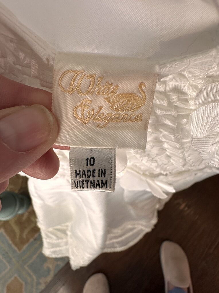 VenmoBeautiful white children’s dress size 10 My daughter uses for her baptism when she was eight it could be used for a party dress,church dress, or for dress up, wedding. good quality and in good condition.