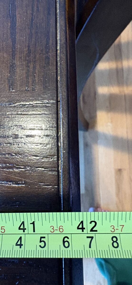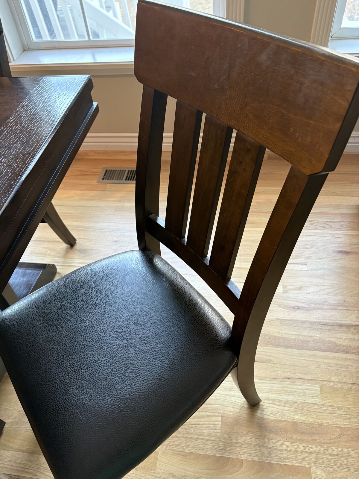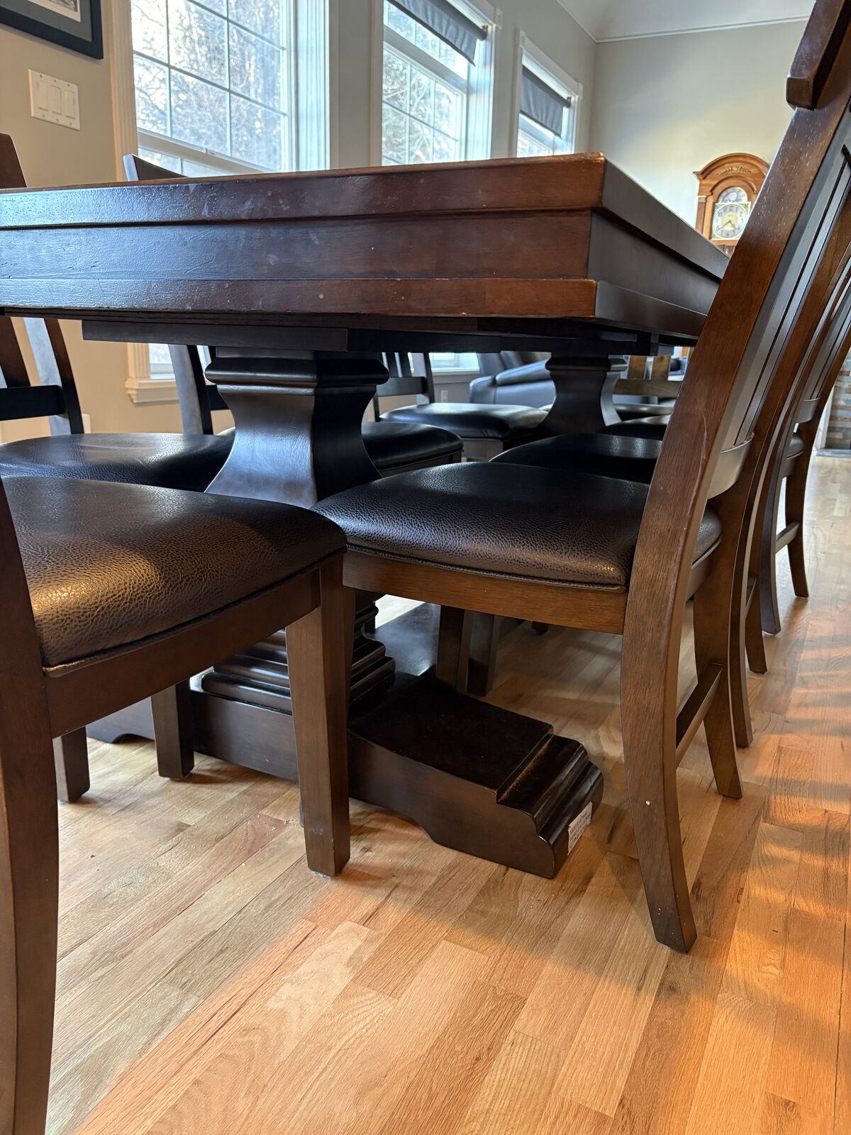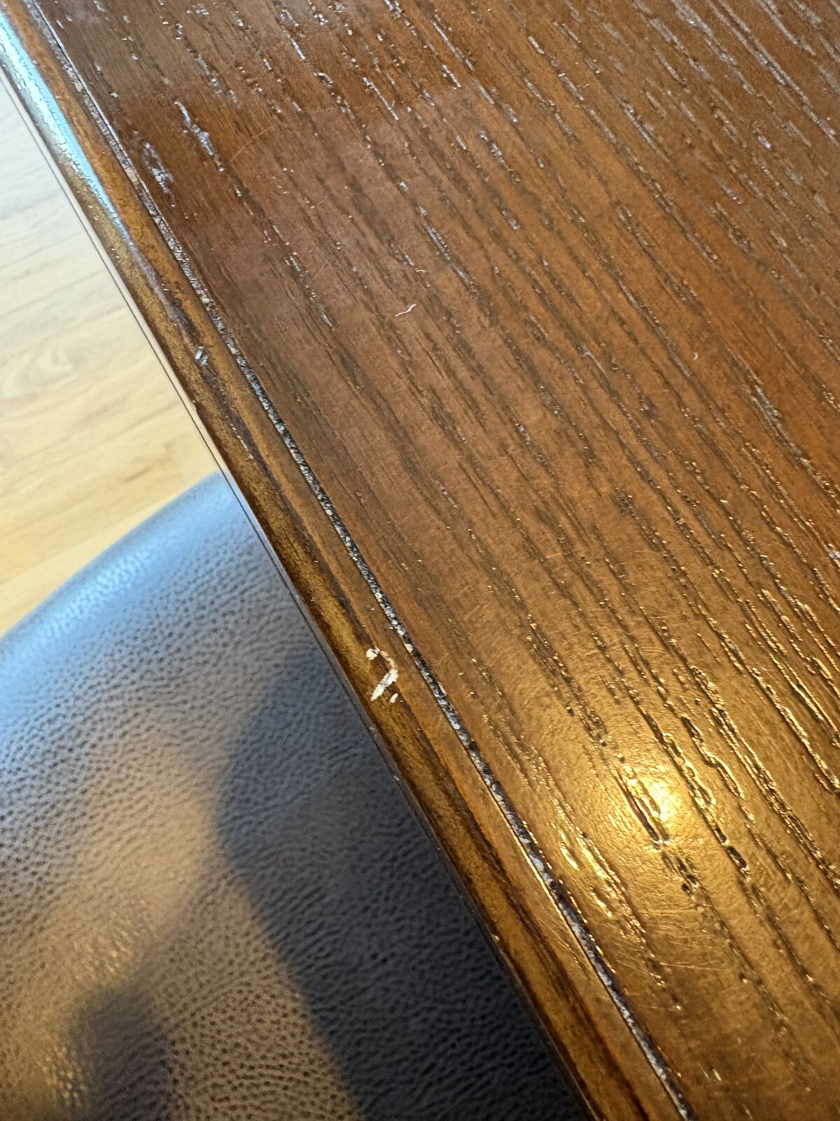 Large table, purchased from Costco 5 years ago for 1500.00. Regular wear and tear with the exception of one chunk off the si( pictures)