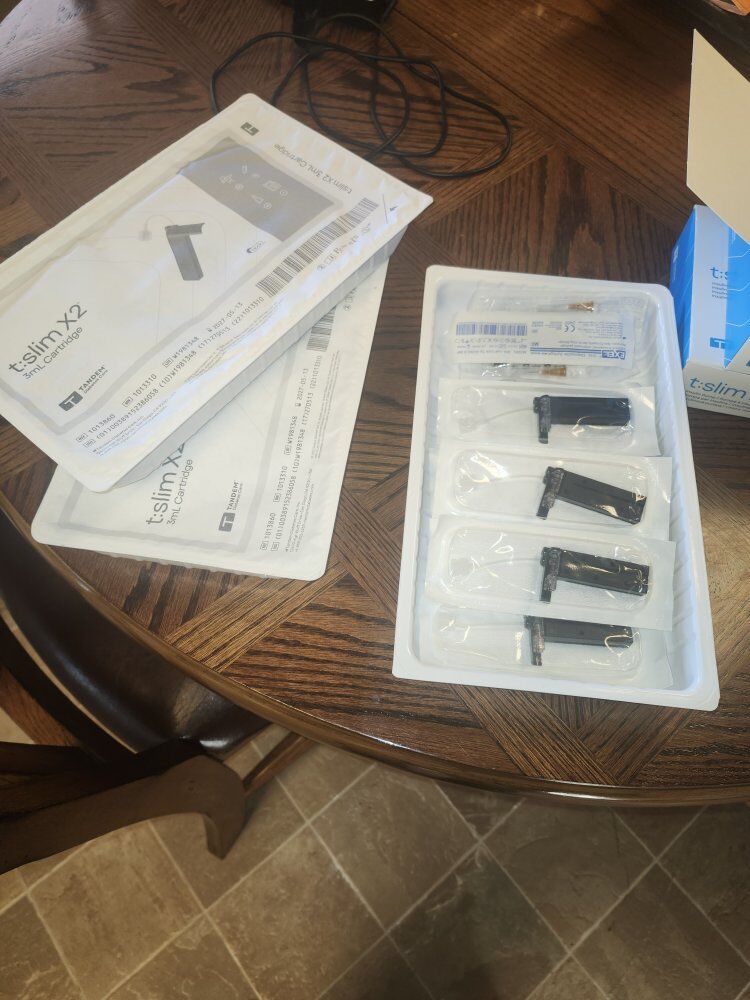 T- slim insulin pump used less than 6 months. good condition. only issue is it is registered to someone else so you are not able to create an account but it works. I belive the only issue with that is you aren't able to send reports to your doctor. We bought this to use until our insurance would pay for another. Pump comes with 2 chargers, a pump case, about 2 and a half boxes of 3ml cartridges
