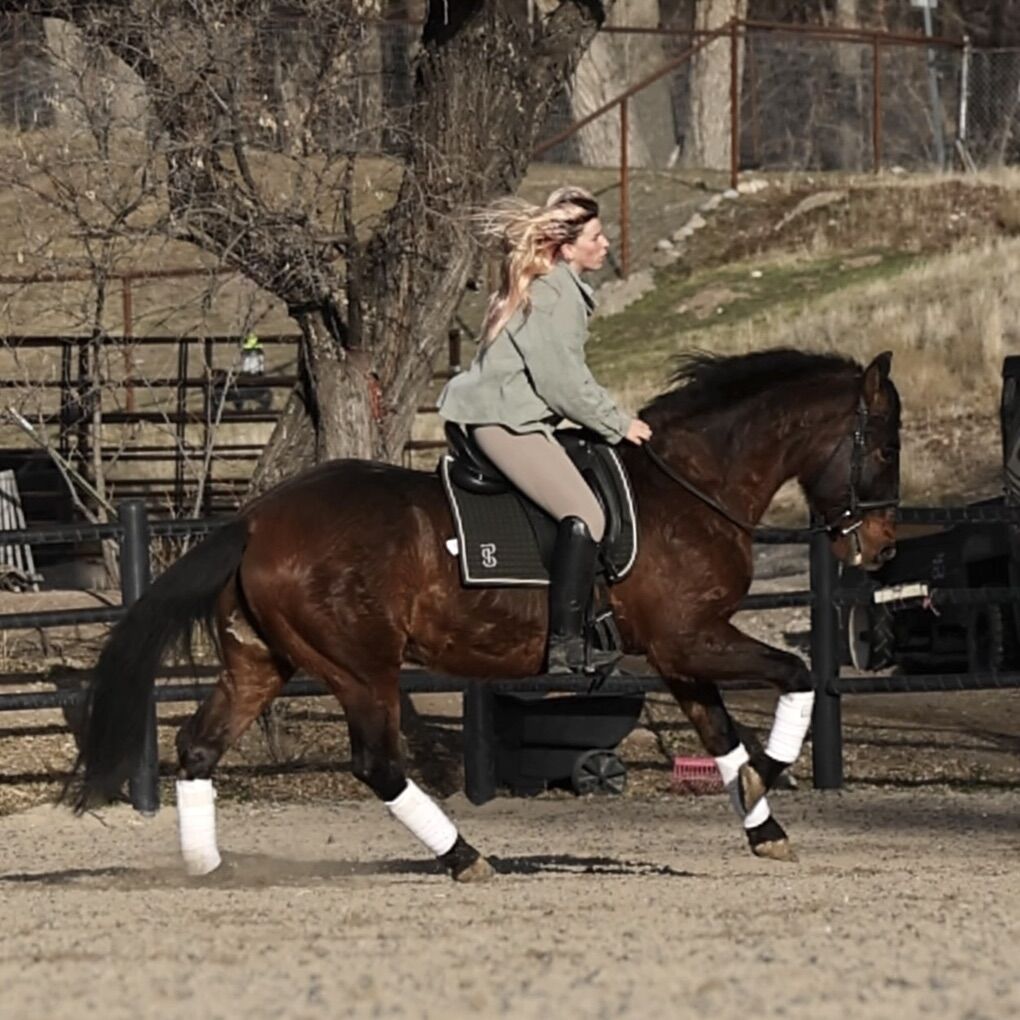 His movement is exceptional and truly stands out. He has prior training in piaffe and Spanish walk and knows several tricks, though he is rusty and will benefit from consistent, correct work.