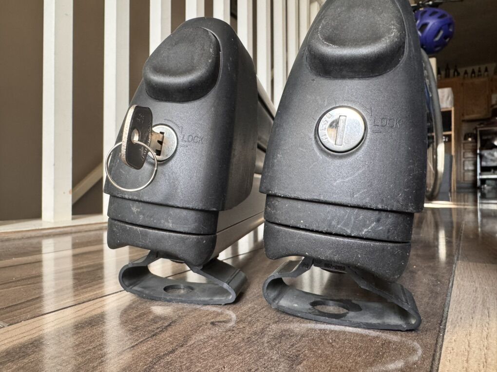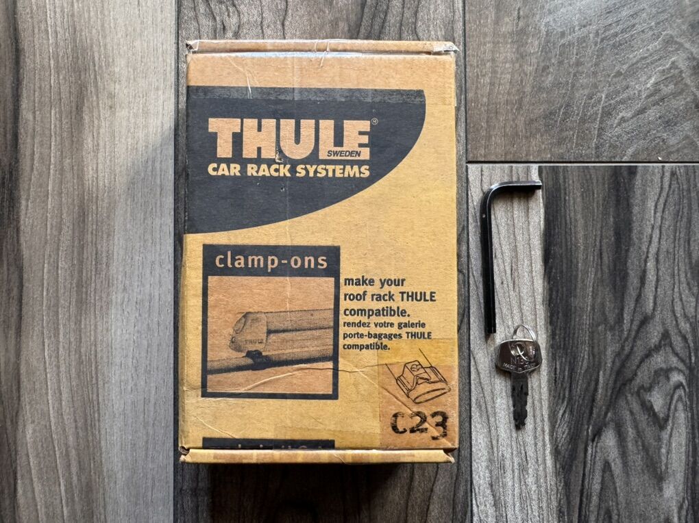 The included mounting hardware fits Subaru style crossbars using the pictured C23 clamp-ons. Comes with the wrench tool for installation and key to lock down your gear.