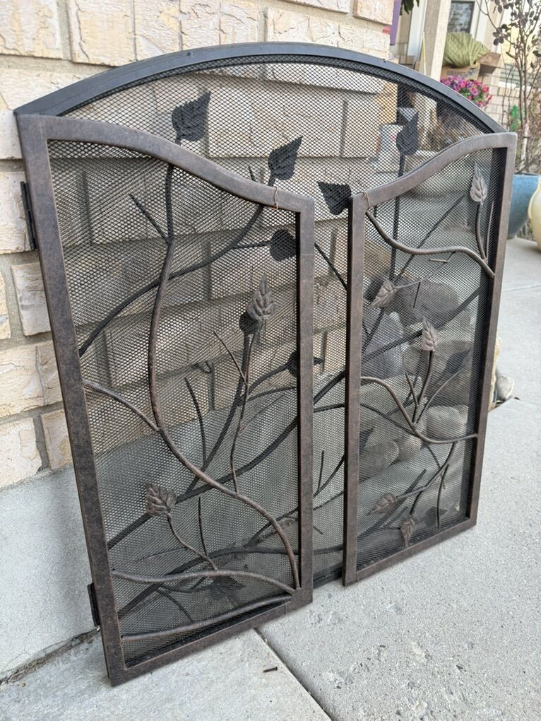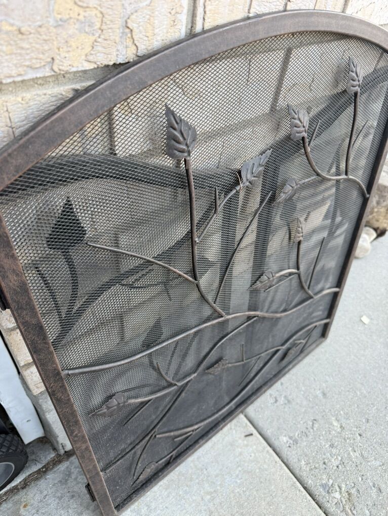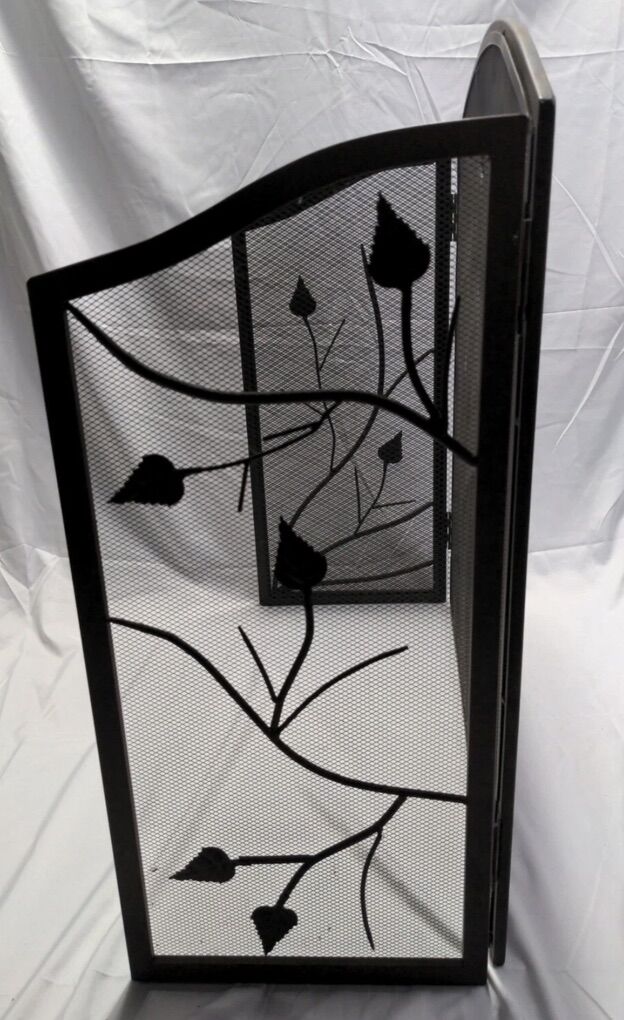 VTG Decorative 3 panel arched top Fireplace Screen With 3D Leaves Decor. Total width 50 30 Tall 26 wide Middle panel 12 wide each Side panel
