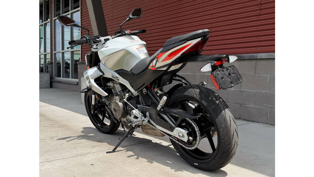 The DOHC valve configuration with 8 valves keeps things running smoothly, while the 4-stroke engine ensures optimal performance. The aluminum frame provides strength and stability, allowing you to maneuver effortlessly through tight corners and straightaways alike. The aluminum wheels add to the overall aesthetic, enhancing both style and performance.
