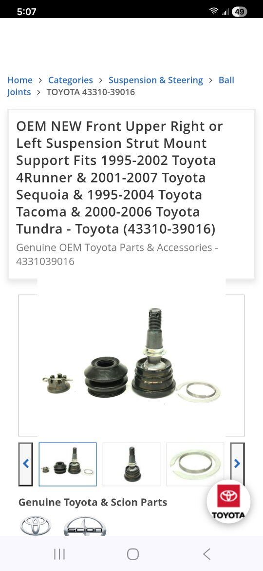 I have a joint assy toyota Part # 43310-39016 this is a genuine toyota part see pictures for fit or look up your vehicle and see if it will work 45.00 cash deal