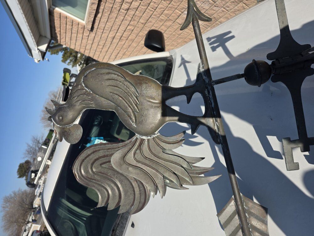 all the research I can see it looks like it's 1928 weather vane rooster it's all copper and really good condition