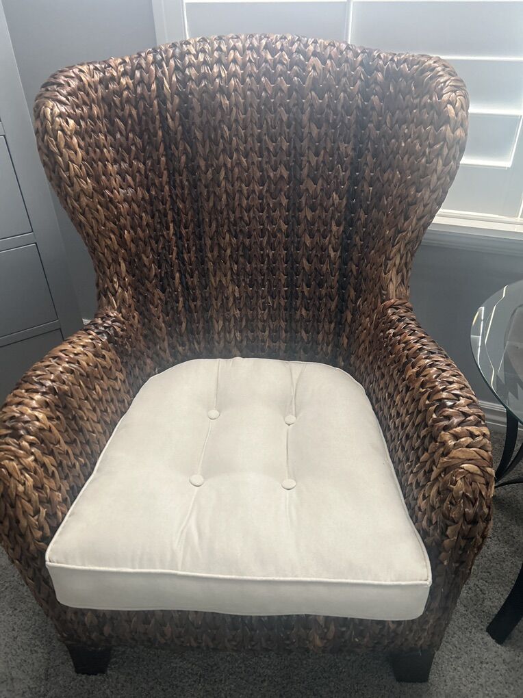 VenmoThese are too excellent seagrass chairs and ottoman perfect for a sunroom or to add texture to your home. This set was originally $2200 from pottery barn they are an excellent condition. They are not for outside use.