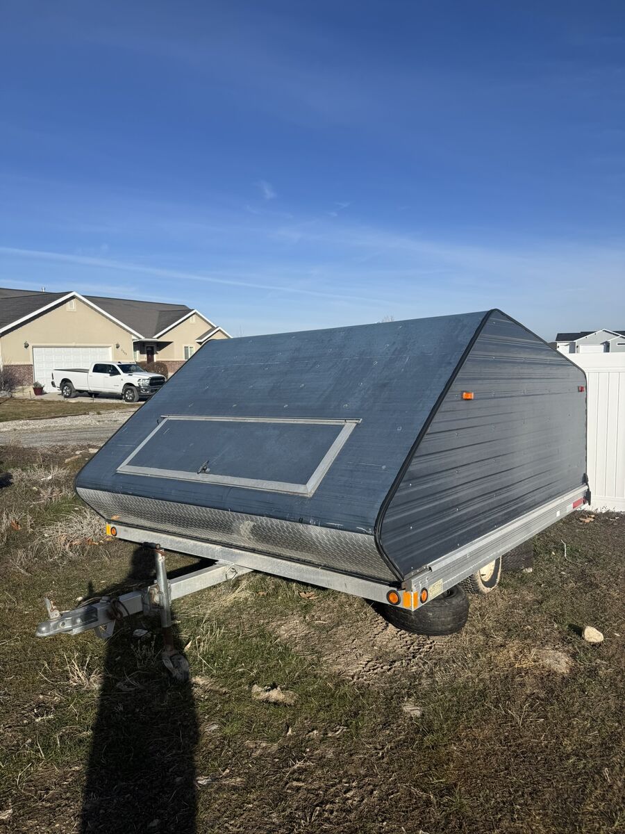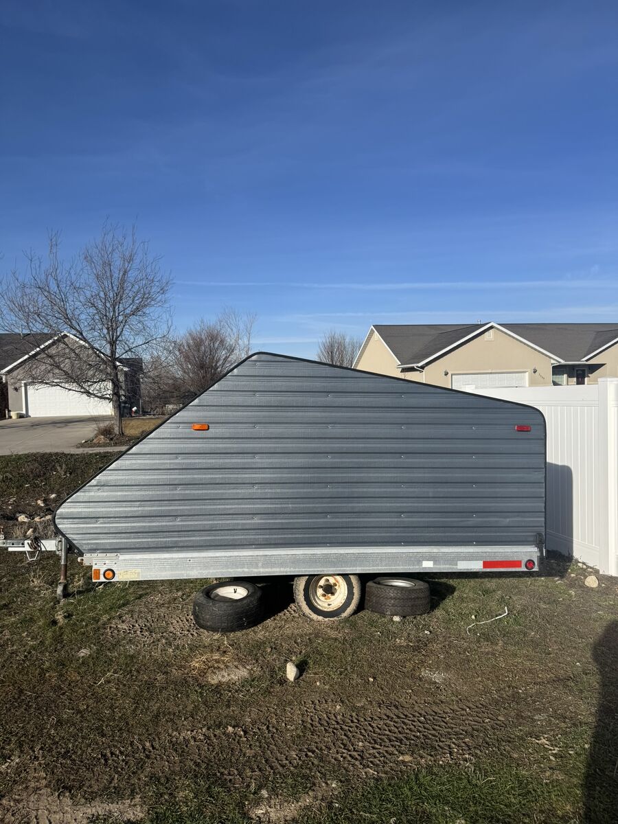 -Aluminum Clamshell tailer with spring bar struts, no rust, all lights work, tilt function works good. In great shape. Trailer is single axle under 700 lbs so doesnt need to be registered or titled.