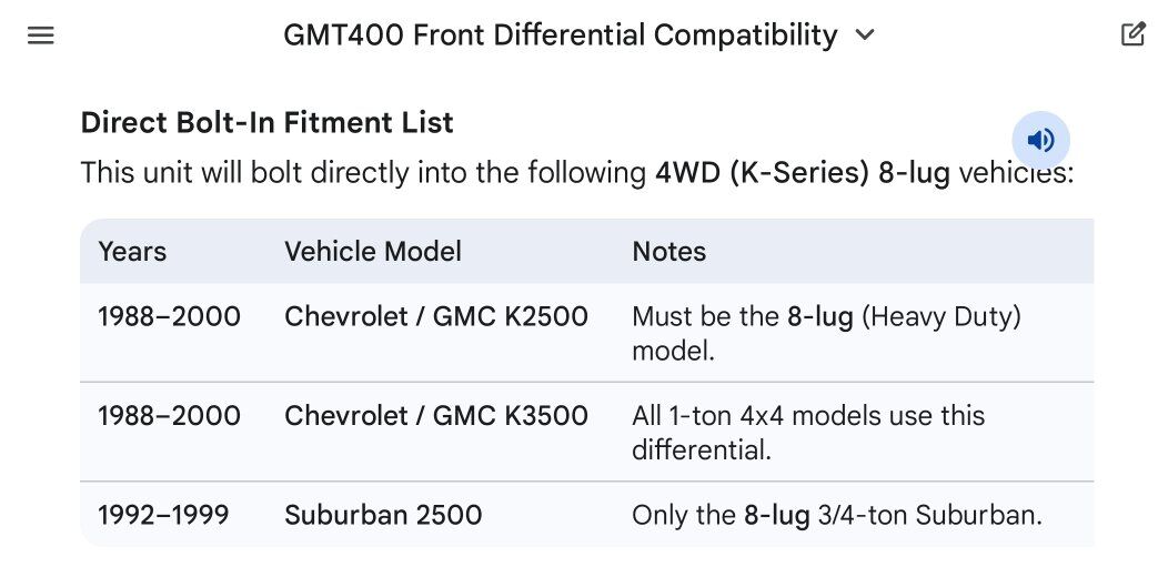 GooglePayThis came out of my 98 Chevy K2500(OBS GMT400). I provided a picture with the the direct bolt in options. Is the the GM 9.25-inch IFS differential with 4.10 gears.