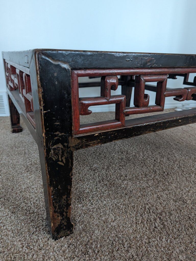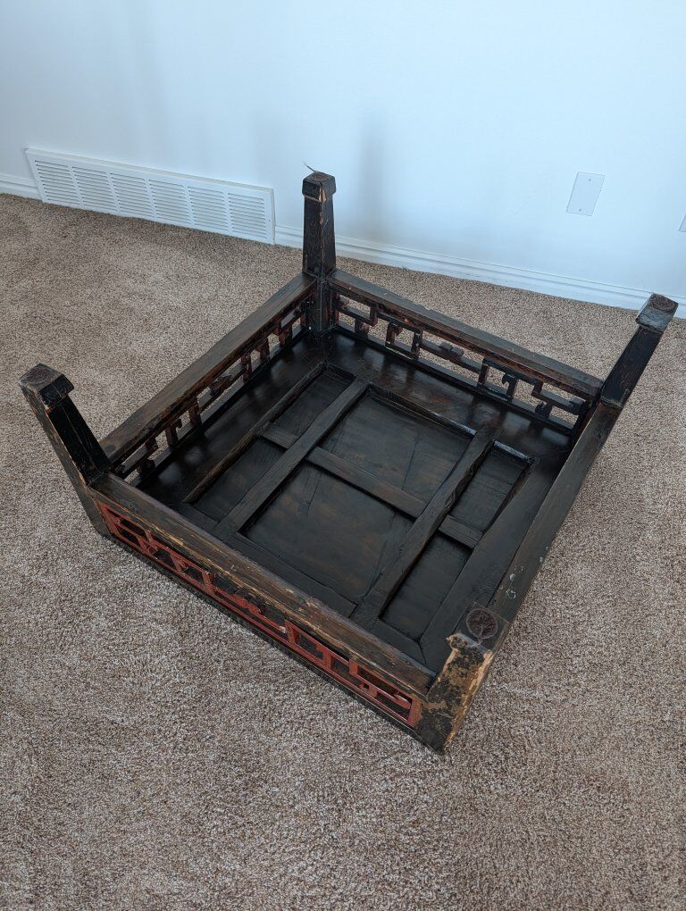 PayPalThis is a vintage Chinese black lacquered elmwood coffee table with a carved apron. My friend purchased it in China, move back to Utah and gave it to me. I don't know a lot about it, but I'm happy to answer any questions. measurements are 32 in by 32 in, and 18 in tall. located in Bountiful.