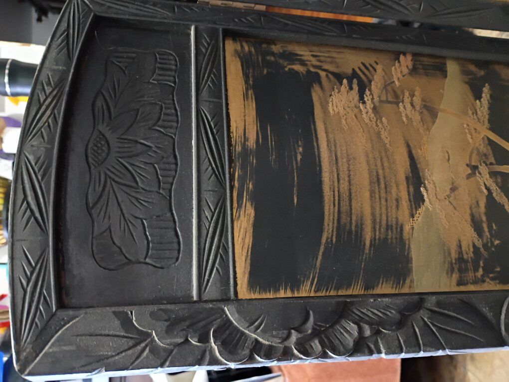 43 tall x 35 wide (measured flat) Its hand carved and hand painted. beautiful piece need gone