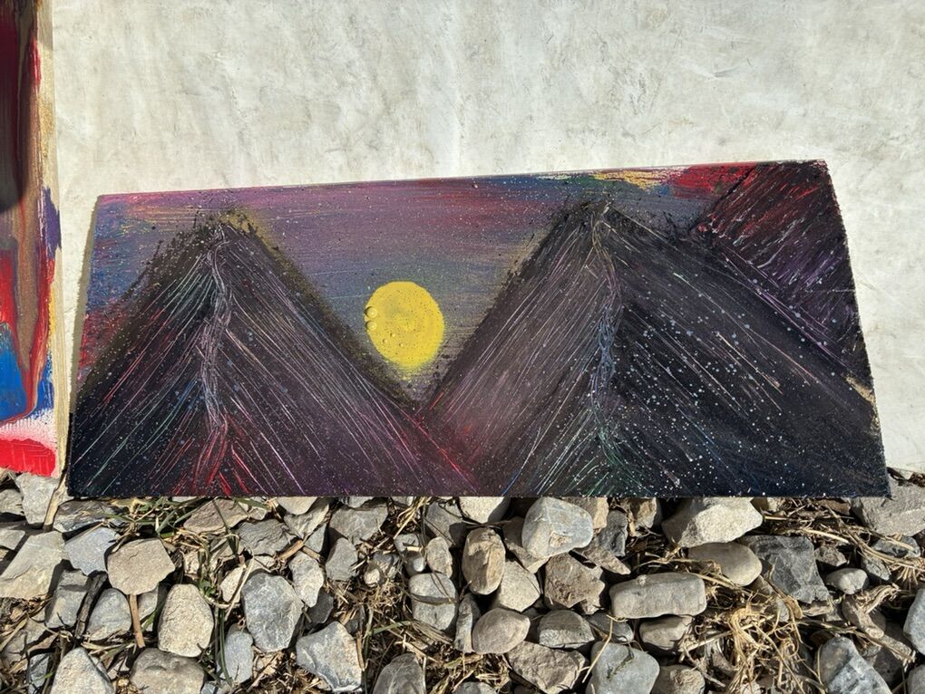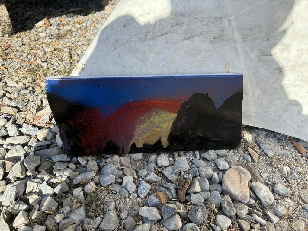 I painted seven paintings on normal pieces of wood with spray paint. They kinda look awesome how they drip down on the different colors. they’re five dollars apiece or I can do $25 for all seven of them. You can hang them inside outside or wherever you want and I will cut off the ends flat if you want me too. And I can also put holes in them if you’d like to hang nails or whatever on.