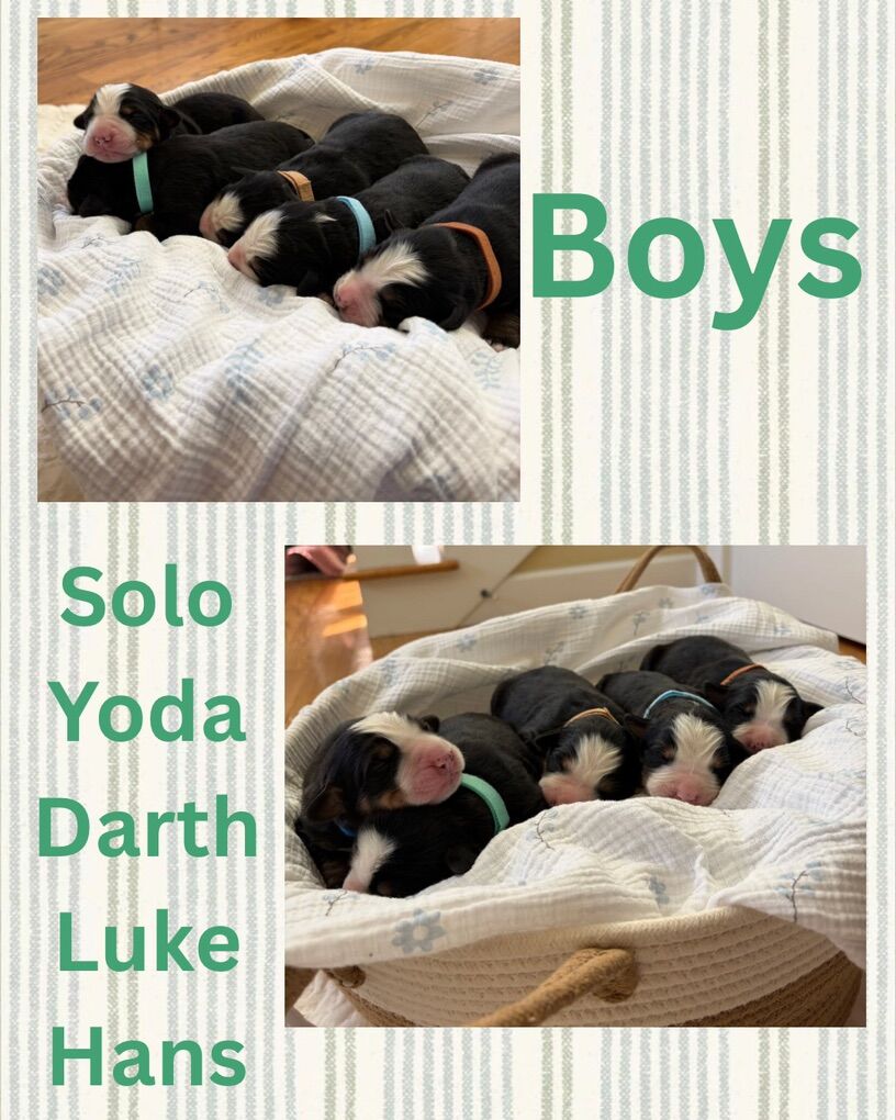 VenmoWe are delighted to announce that our AKC-registered Bernese Mountain Dog, Willow, welcomed seven beautiful puppies on January 30.