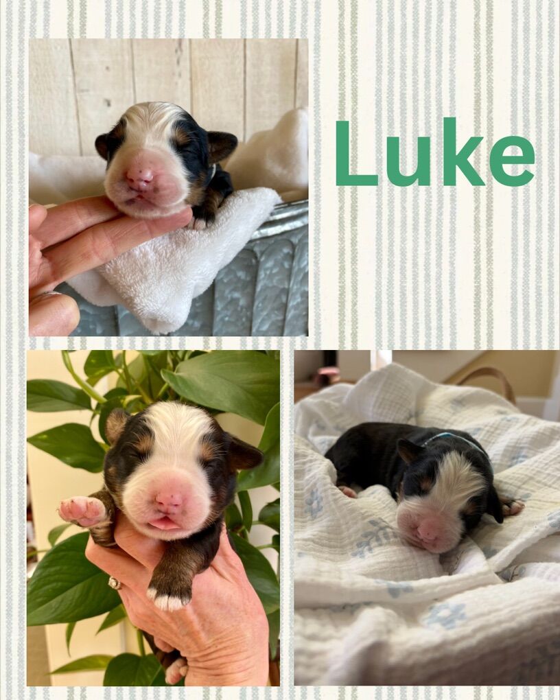 Willow is an exceptional mother and incredibly attentive to her puppies—I couldn’t be more pleased with her. She has a loving, affectionate, and loyal temperament and thrives being close to her family, soaking up all the attention she can get. She is a standout Bernese Mountain Dog and receives constant compliments on her beauty and sweet disposition. Willow comes from Lost Trails Berners out of Idaho. I chose her specifically for her outstanding bloodlines and strong genetic attributes. Her documented lineage traces back to the world-renowned Van ’t Stokerybos kennel in Belgium, and her pedigree rivals that of any large club breeder. I waited over a year for her, and she has truly been a blessing to our family. Willow weighs 85 lbs, has completed DNA testing, is clear of all genetic diseases, and is fully up to date on veterinary care.