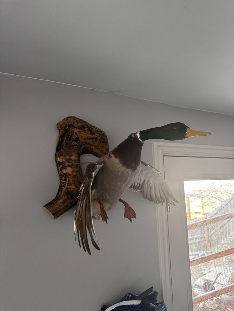 VenmoAuthentic antique taxidermy mallard duck in a flying wall-mount pose. Real feathers and body, professionally mounted on wood backing. Good vintage condition with natural wear consistent with age. Makes a great piece for cabin, lodge, hunting decor, or collector display.