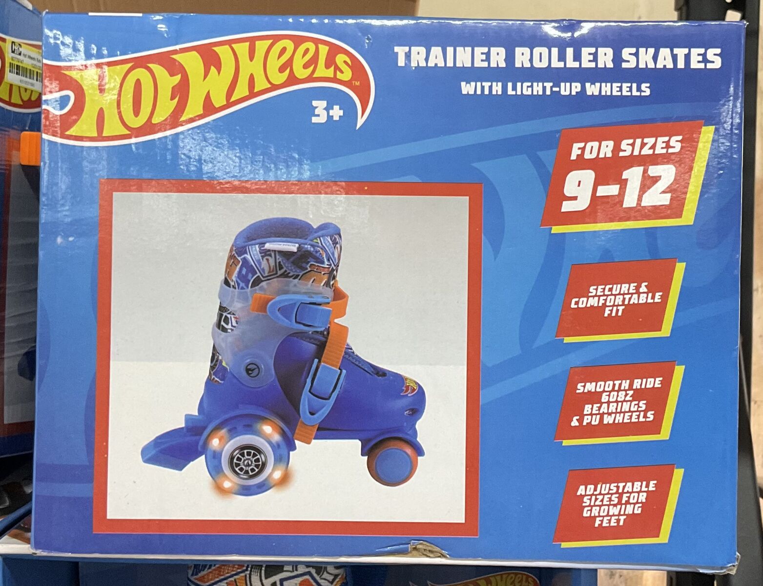 Hot Wheels-themed training rollerskates featuring fun light-up wheels that glow as you roll. Perfect for kids learning to skate and great for playtime, outdoor fun, or gifting. Eye-catching design and added stability make these ideal for young beginners.