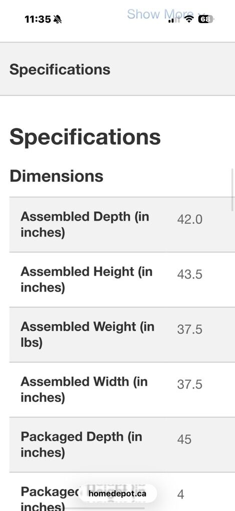 Dimensions in inches : 42 Deep 43.5 High 37.5 Wide