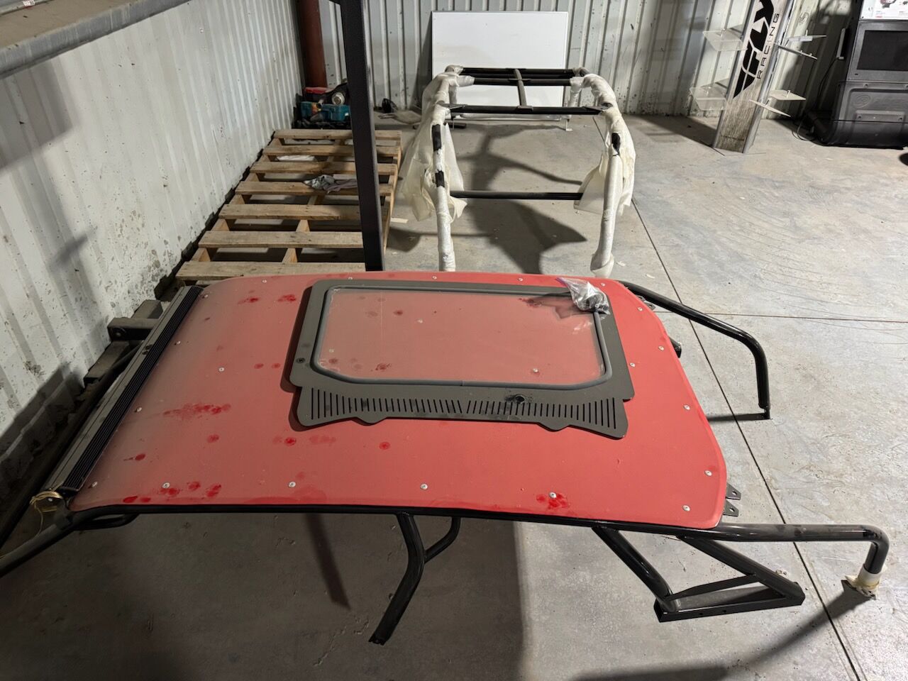 Brand new never been installed Polaris Rzr pro xp 4 seat cage. Comes with roof, light bar, and full glass windshield. Fits model year 24 and older.