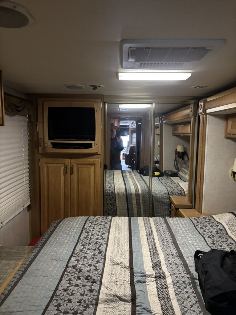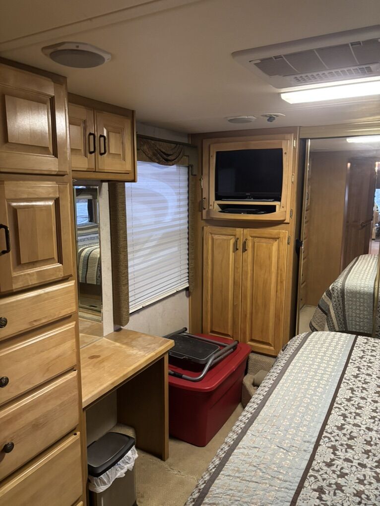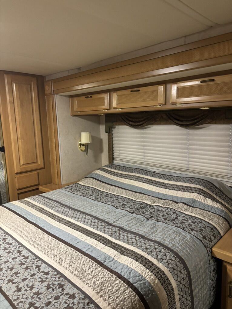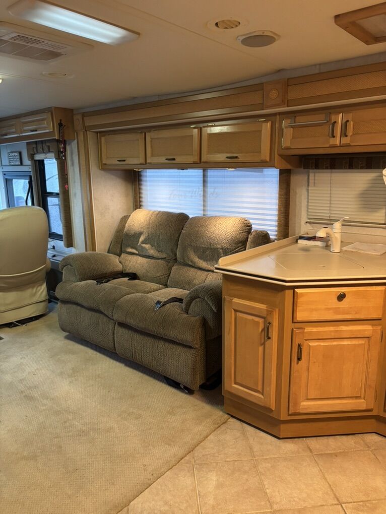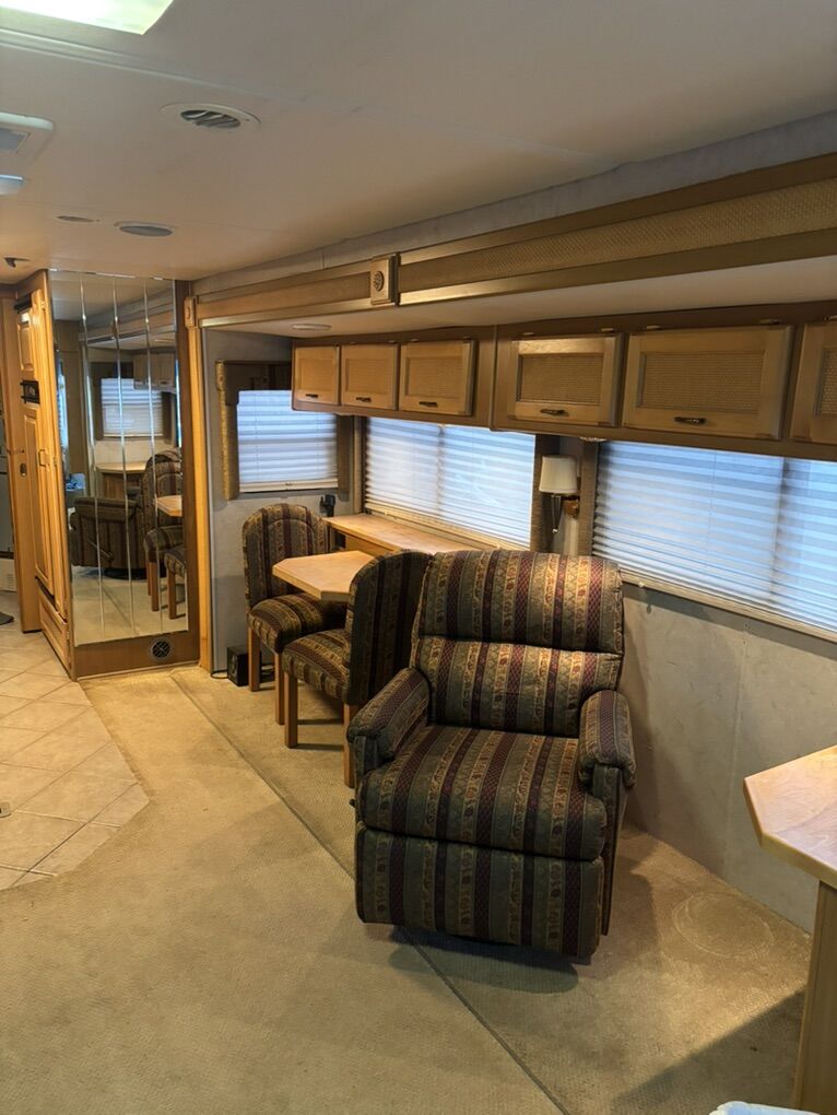 Meticulously maintained & upgraded over the last 7 years. Mechanically sound and road worthy. 350 Cummins turbo diesel engine. Allison 6 speed automatic transmission. Roadmaster chassis w/ 4 air bags. 3 point hydraulic stabilizer system. 7500 Watt Onan diesel generator. 3 slide outs Roof mounted solar panel. Convenient basement storage. Combo washer/dryer ready. 2 New chassis batteries. 4 AGM house batteries new in May 2023. 4 New rear tires in 2021. 2 steer tires new in 2020. Upgraded Xantrex inverter/charger 2500W in 2023. New slide toppers in 2024. Upgraded patio awning controls. Upper belt line repair on drivers side in 2025. La-Z-Boy reclining love seat. Reinforced body to frame mounts in 2021. New convection microwave. New transfer switch. 2 air conditioners/heat pumps. Overhauled propane furnace. Tire chains included. LED headlights. Tire covers included. 2 Flat screen TVs. Upgraded queen mattress.