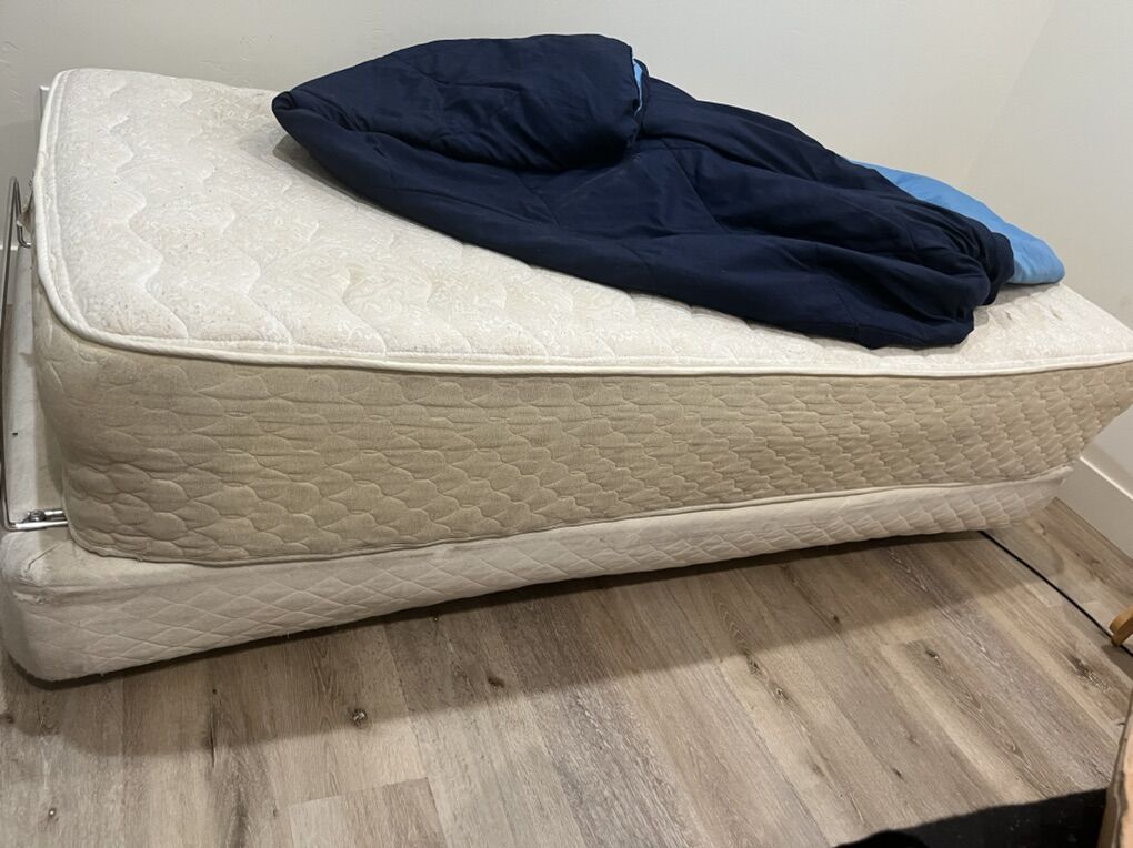 ApplePayVery heavy. Will likely take two people to get it up basement stairs. Will include (never used, just laundered) sheets, blanket, brand new pillow and mattress protector. Frame is motorized but missing remote