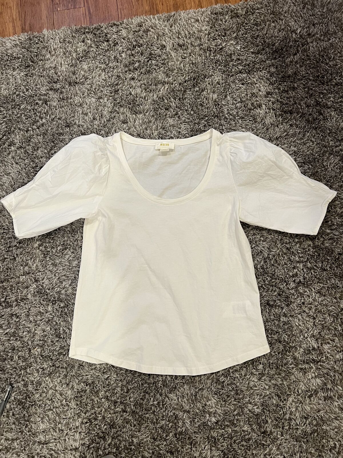 New without tags, has been washed but never worn. Ivory/just off white color. Scoop neck is wide and low on me - I'm short.