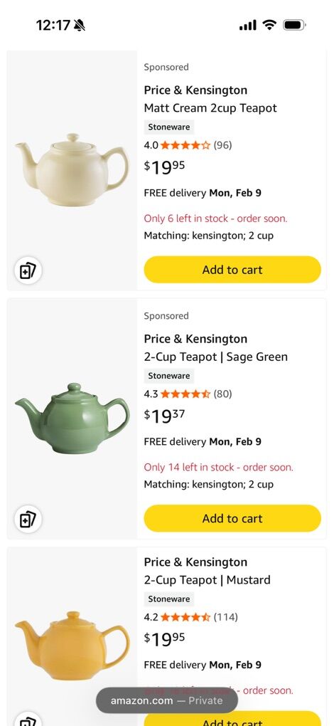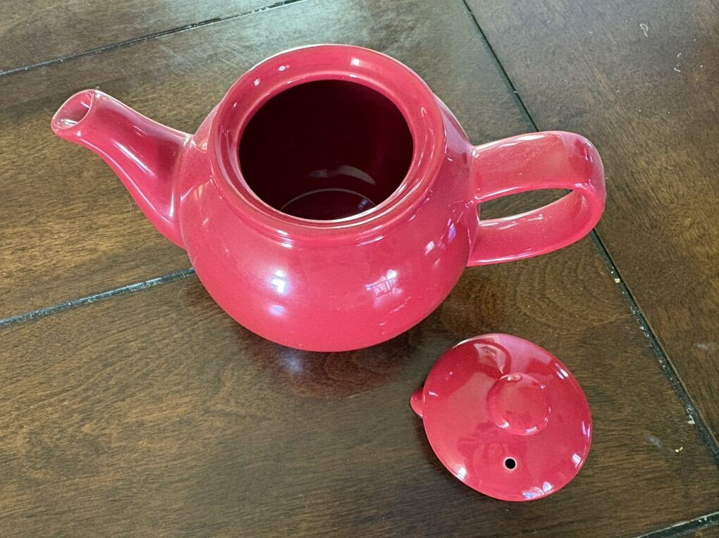 I have a new red Price & Kensington 2 cup teapot. It is still in the box. It says 15 fl oz/0.47 qt. The last picture shows that the same pots on Amazon sell for $19 plus tax. See my other ads for jewelry, artwork, home decor and more.