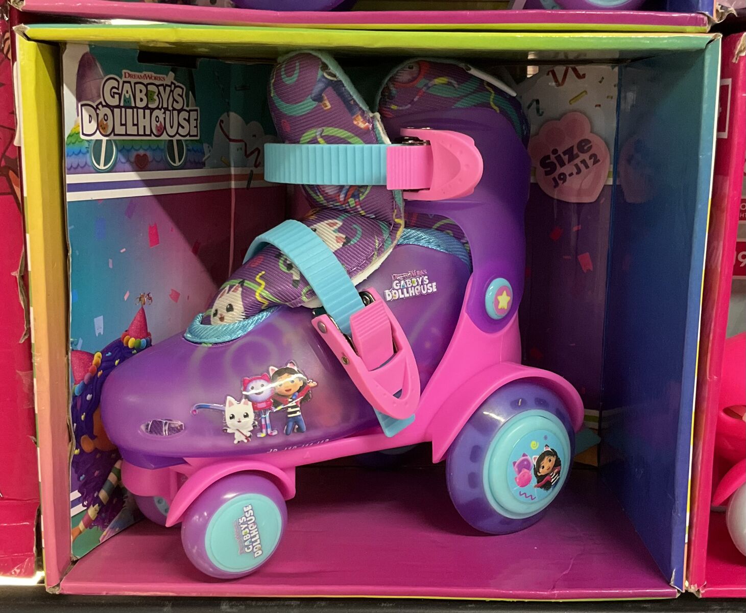 Gabby’s Dollhouse themed trainer roller skates designed to help kids learn to skate with extra stability. Fun character design and supportive build make them perfect for beginners ready for outdoor play and active fun. sized for kids ages 9–12.
